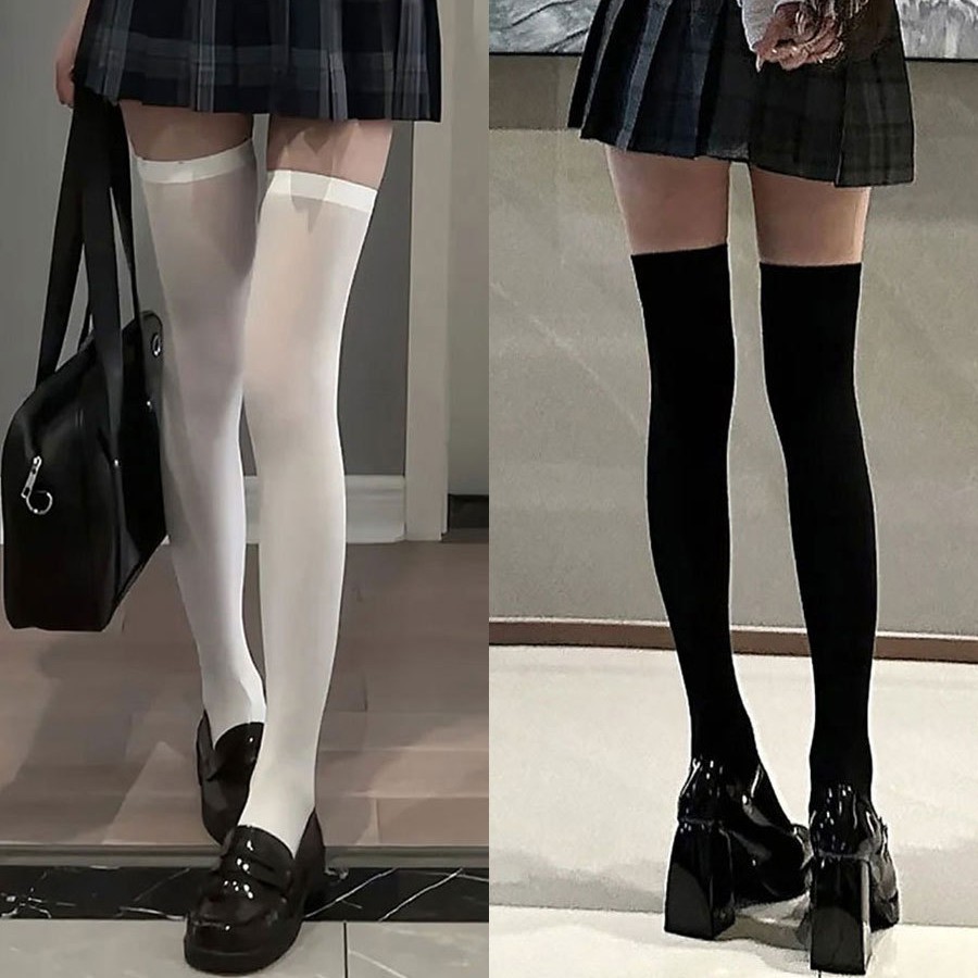 加长过膝袜70cm女春夏薄款天鹅绒长高筒袜大长腿黑丝jk压力袜白色