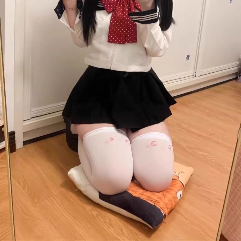 二次元表情ストラップソックス太ももソックス女性プリント漫画 JK ソックスオーバーニーソックスハイストッキング白ロング