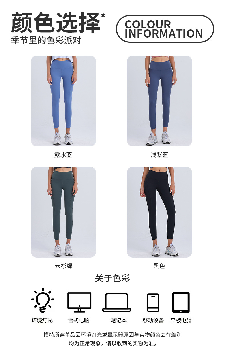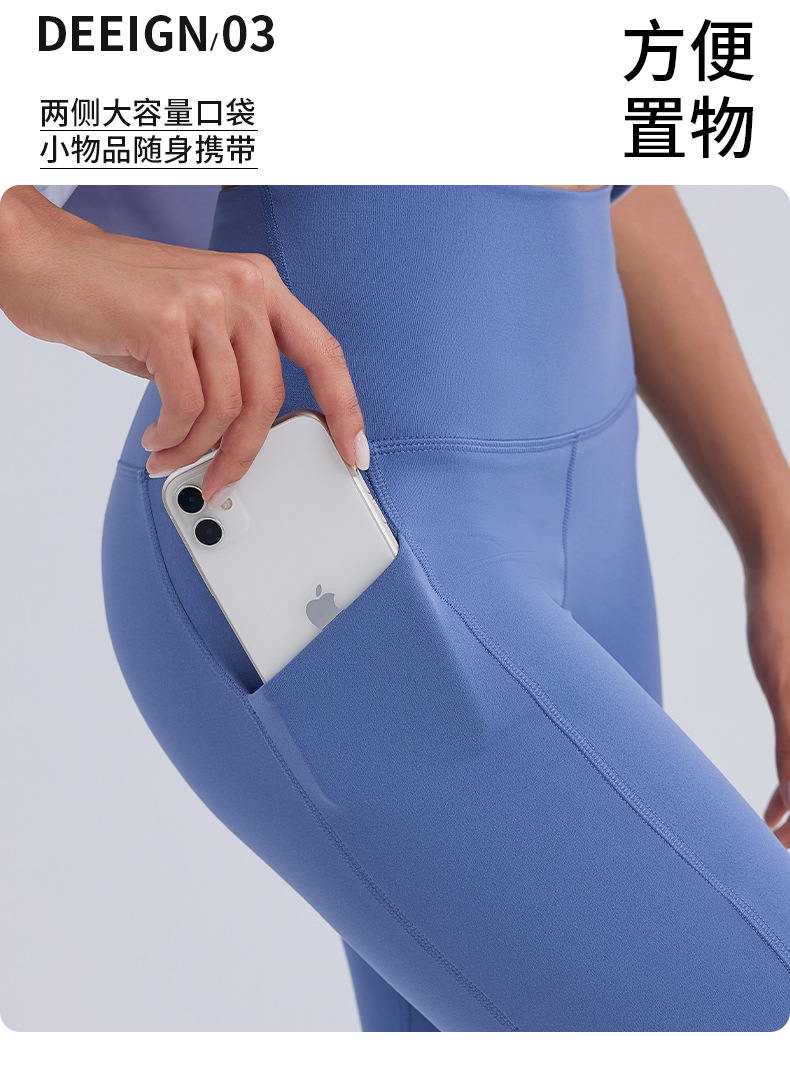 裸感ハイウエストポケット付きヨガパンツ レディース ピーチヒップアップフィットネスパンツ トレーニング ランニング スポーツタイツ 外出着としても着用可能