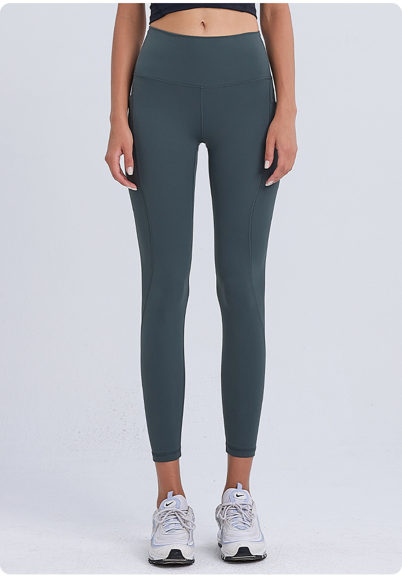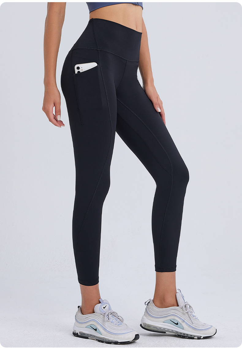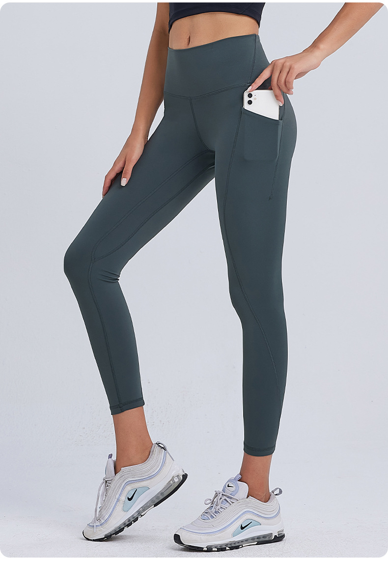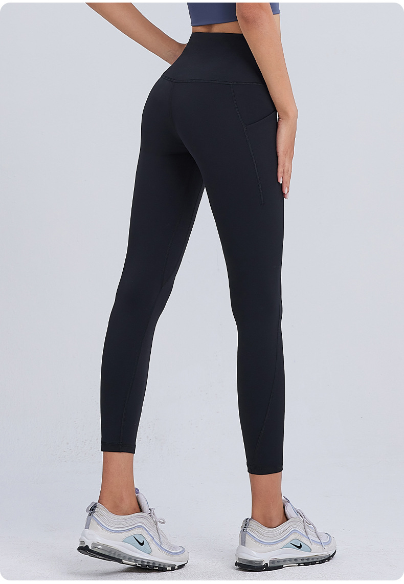 ヌードハイウエストヨガウェアクロスウエストヒップリフティングおなかポケットスポーツレギンスランニングフィットネスヨガパンツ女性用