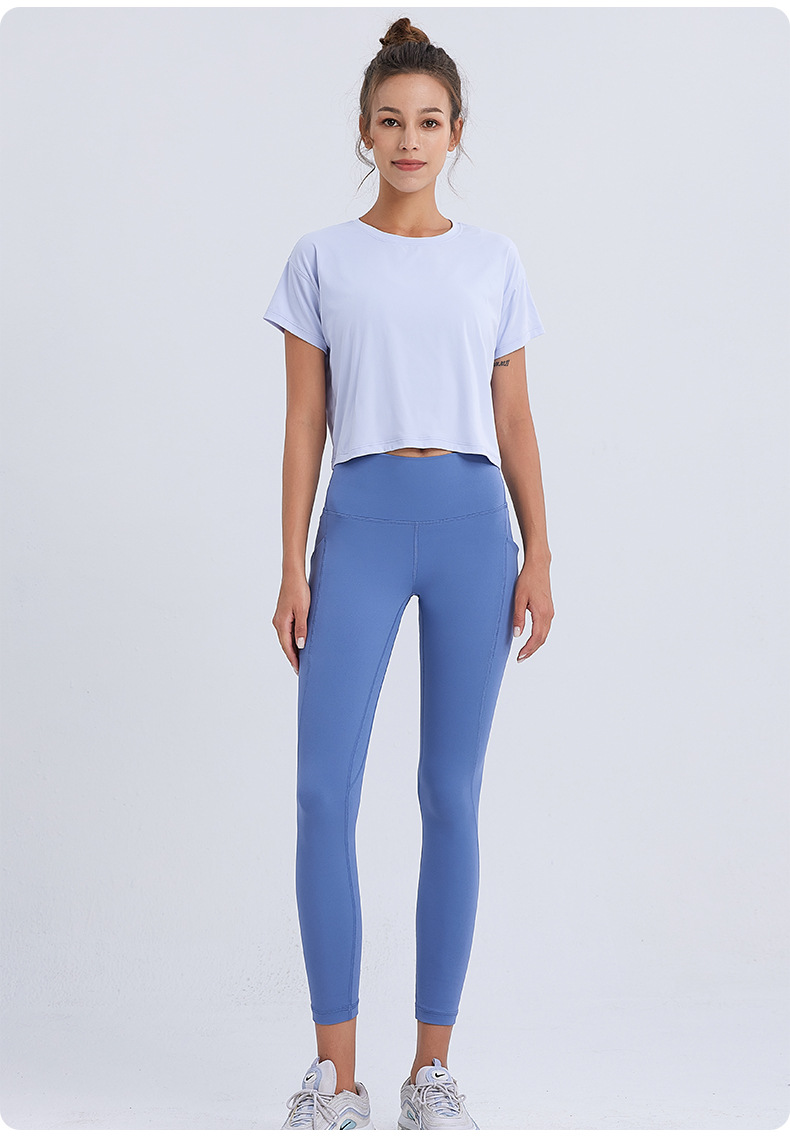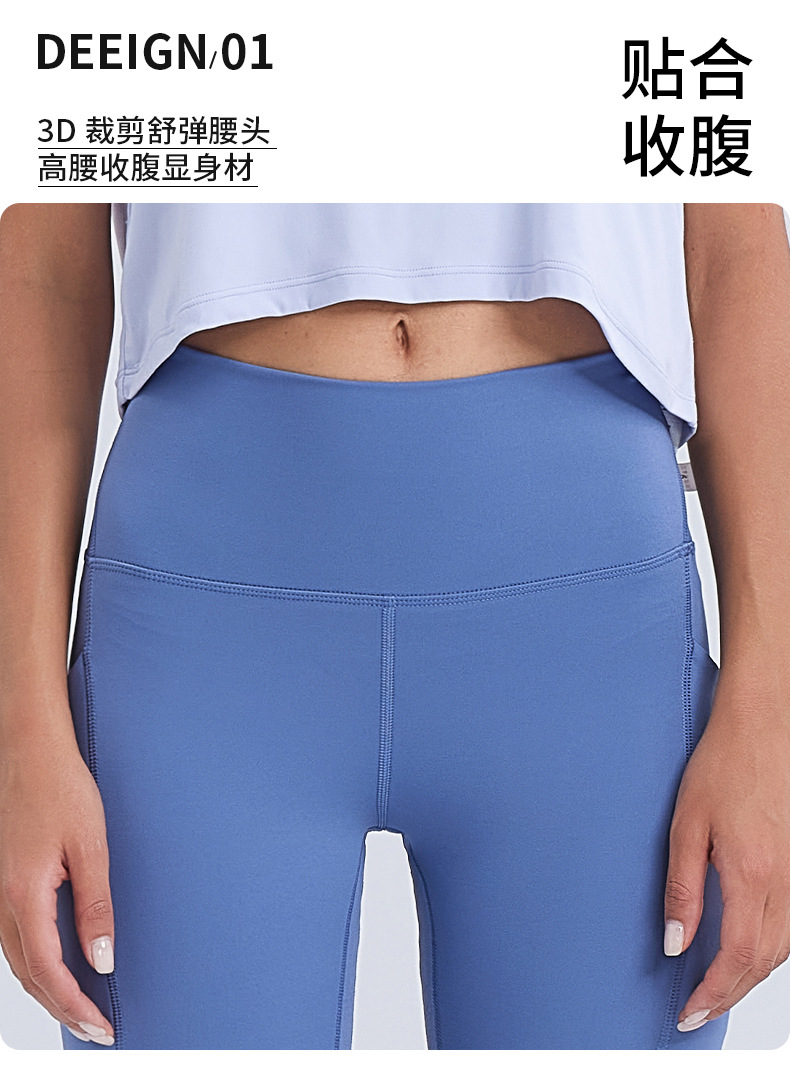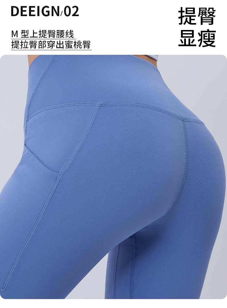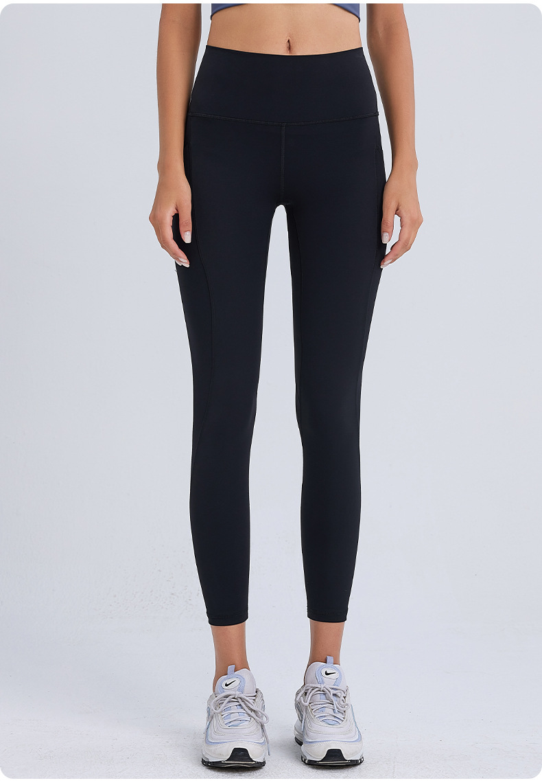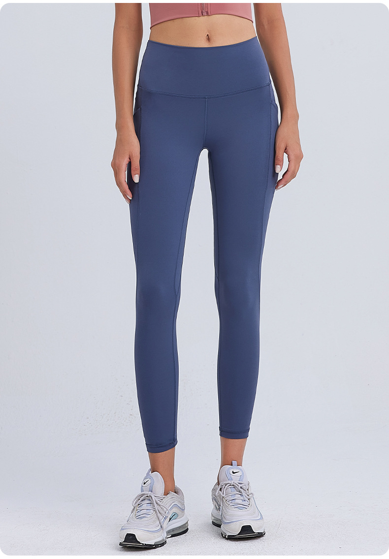ヌードハイウエストヨガウェアクロスウエストヒップリフティングおなかポケットスポーツレギンスランニングフィットネスヨガパンツ女性用