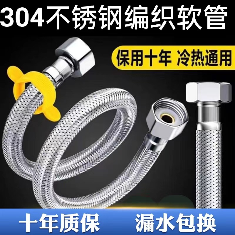 304ステンレス編みパイプ冷熱水二頭ホース便器給湯器高圧防爆4分水パイプ