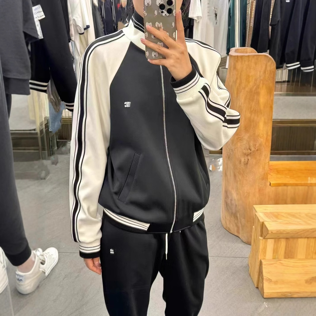 高品原标CEL家拼接撞色刺绣凯旋门拉链夹克外套男女长裤运动套装