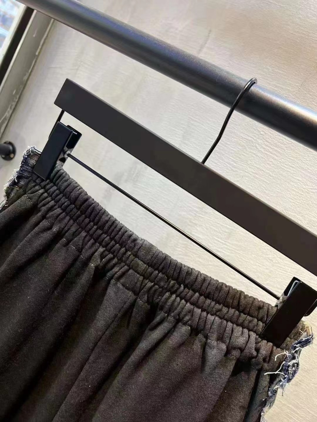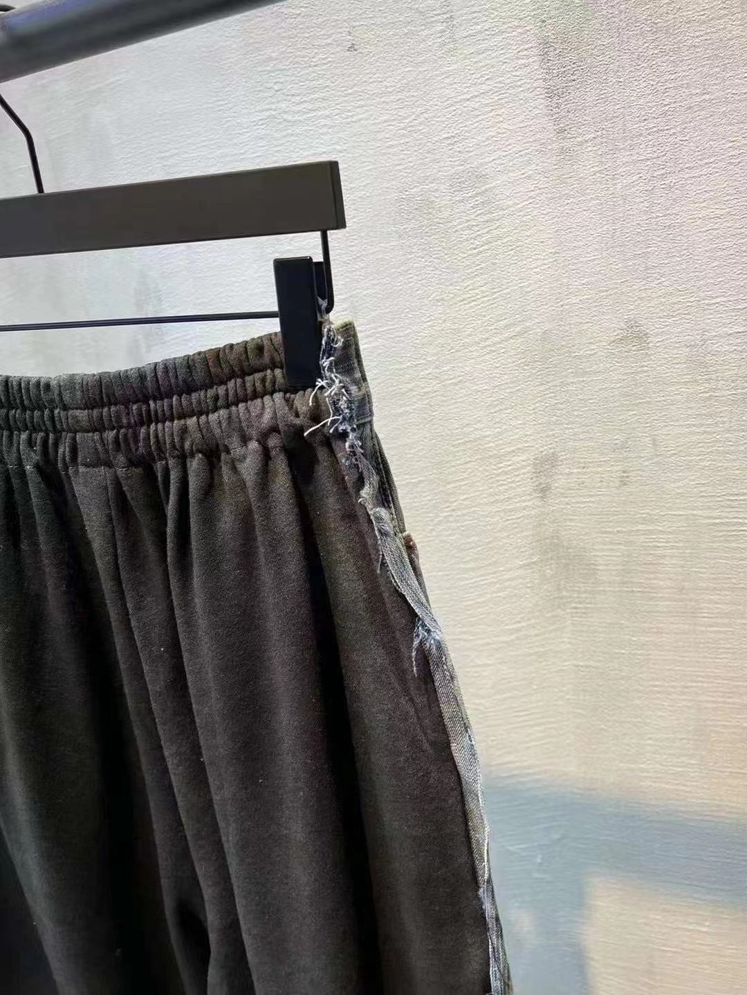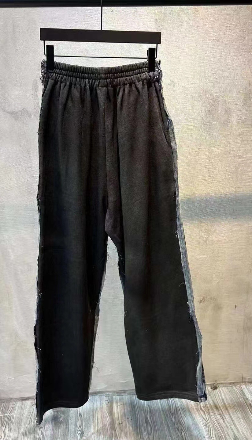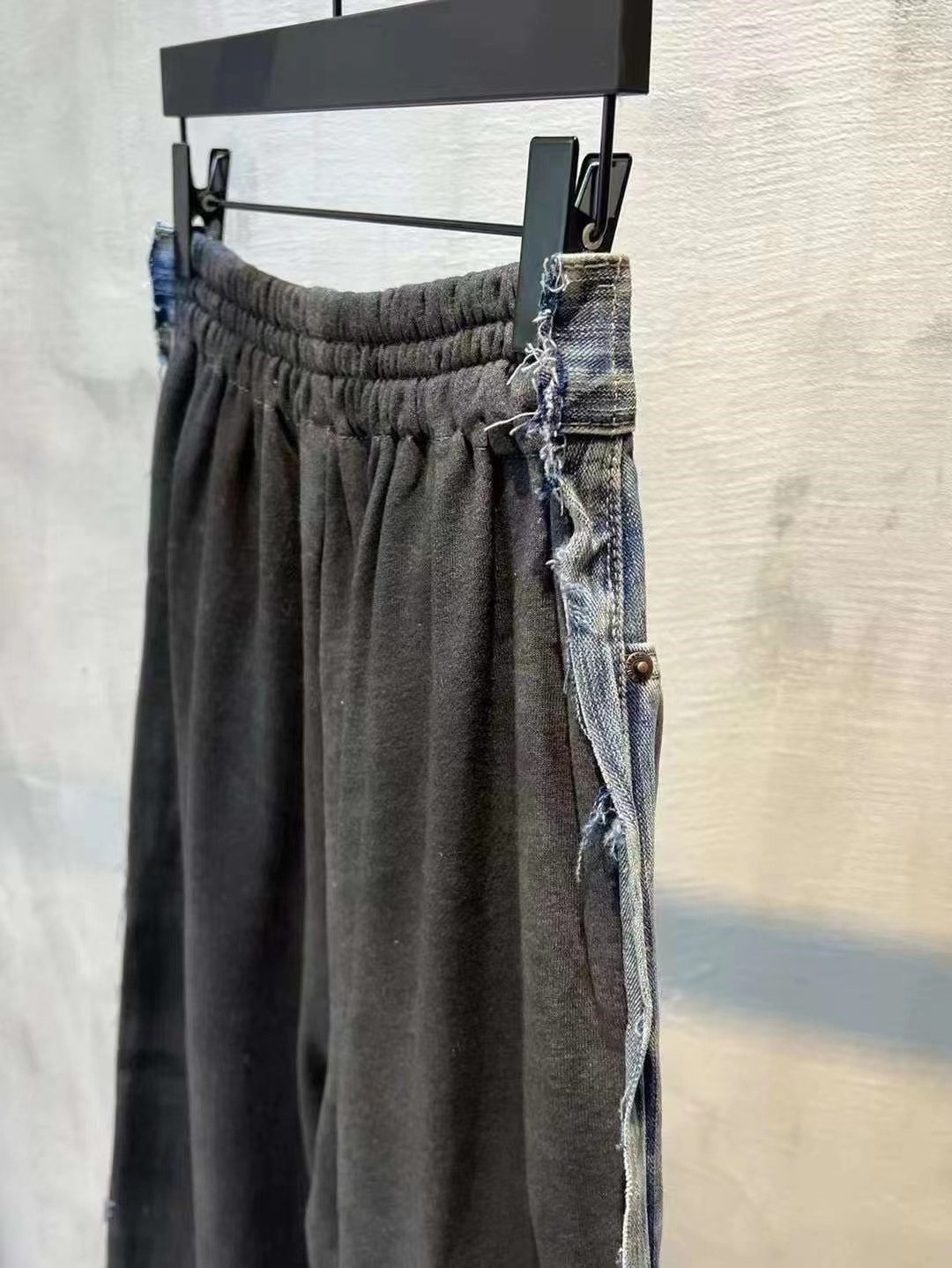 巴黎B家新款前后拼接撞色毛圈黑花灰色卫裤男女休闲百搭牛仔裤