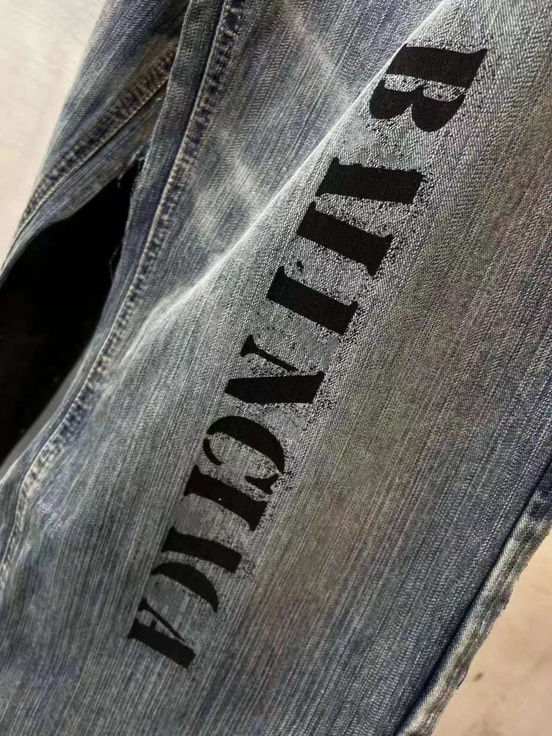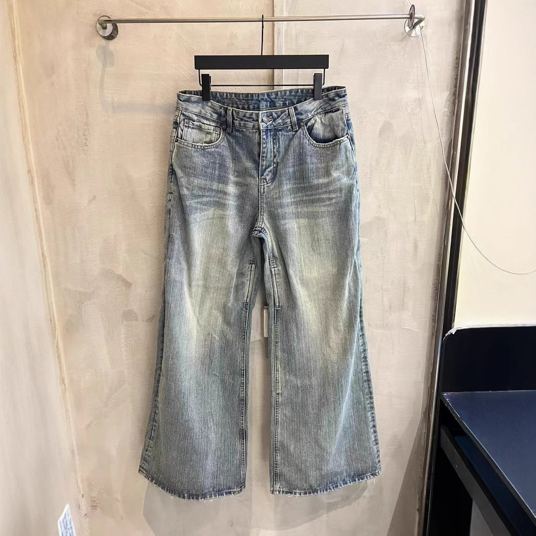 高版本巴黎B家25FW新款磨破水洗做旧复古牛仔裤Os宽松版型情侣款