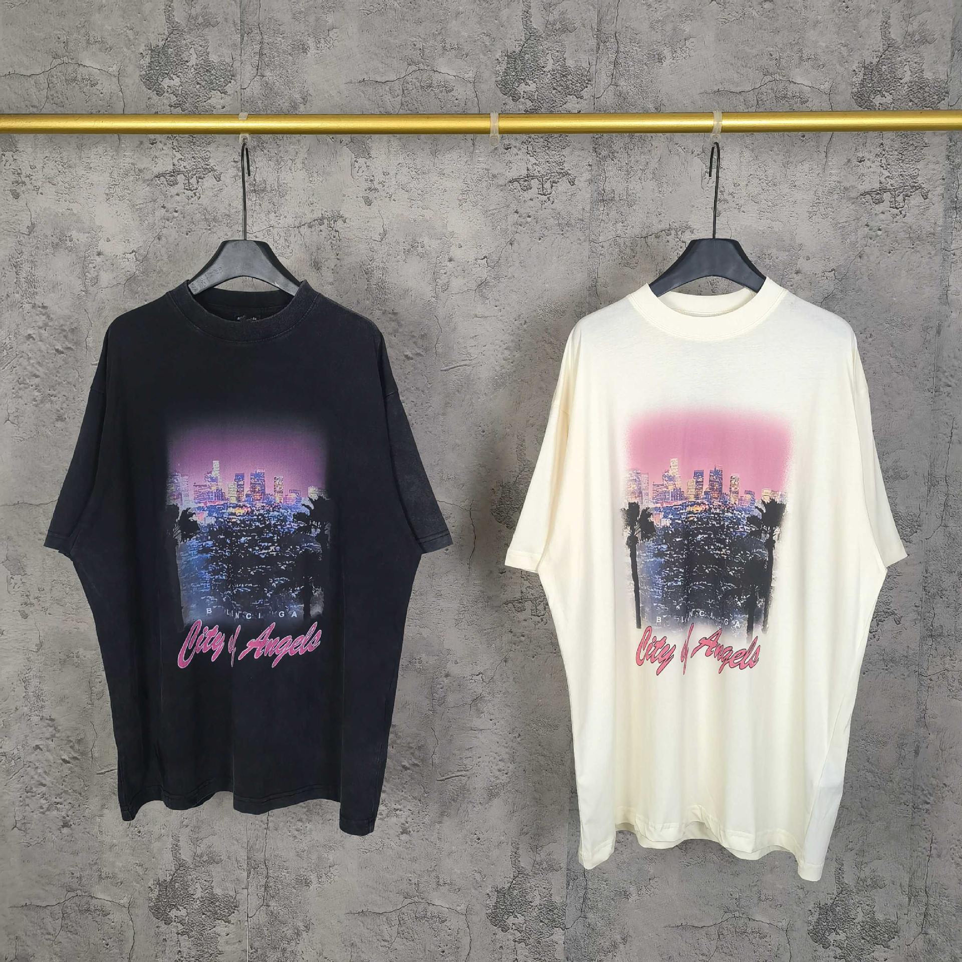 Ceiling Poisoner オリジナル パリ B エンジェルシティ ロサンゼルス 夜景 直噴プリント ラウンドネック 半袖 Tシャツ