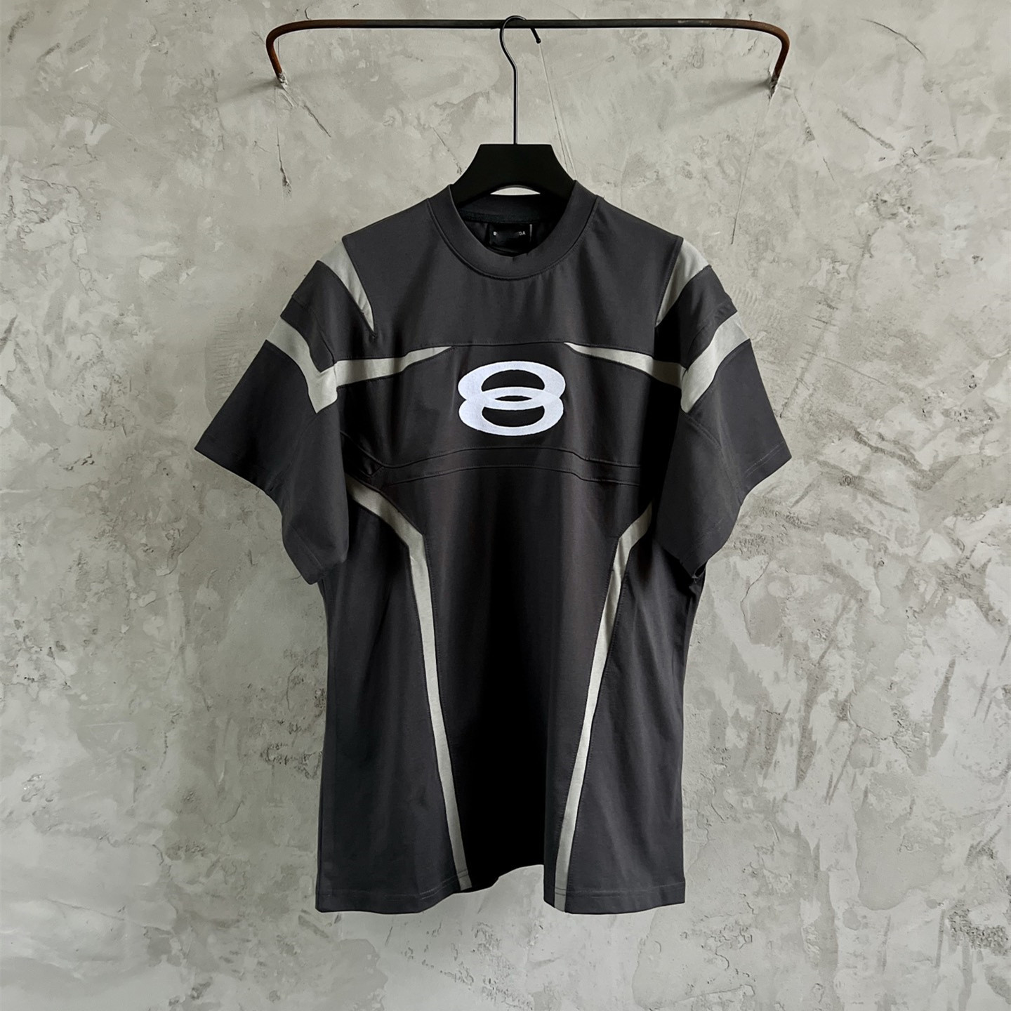 オリジナルパリBステッチ刺繍文字ヘビーデューティーファンクショナルスタイルウェイストランド男女兼用ルーズ半袖Tシャツの正しいバージョン