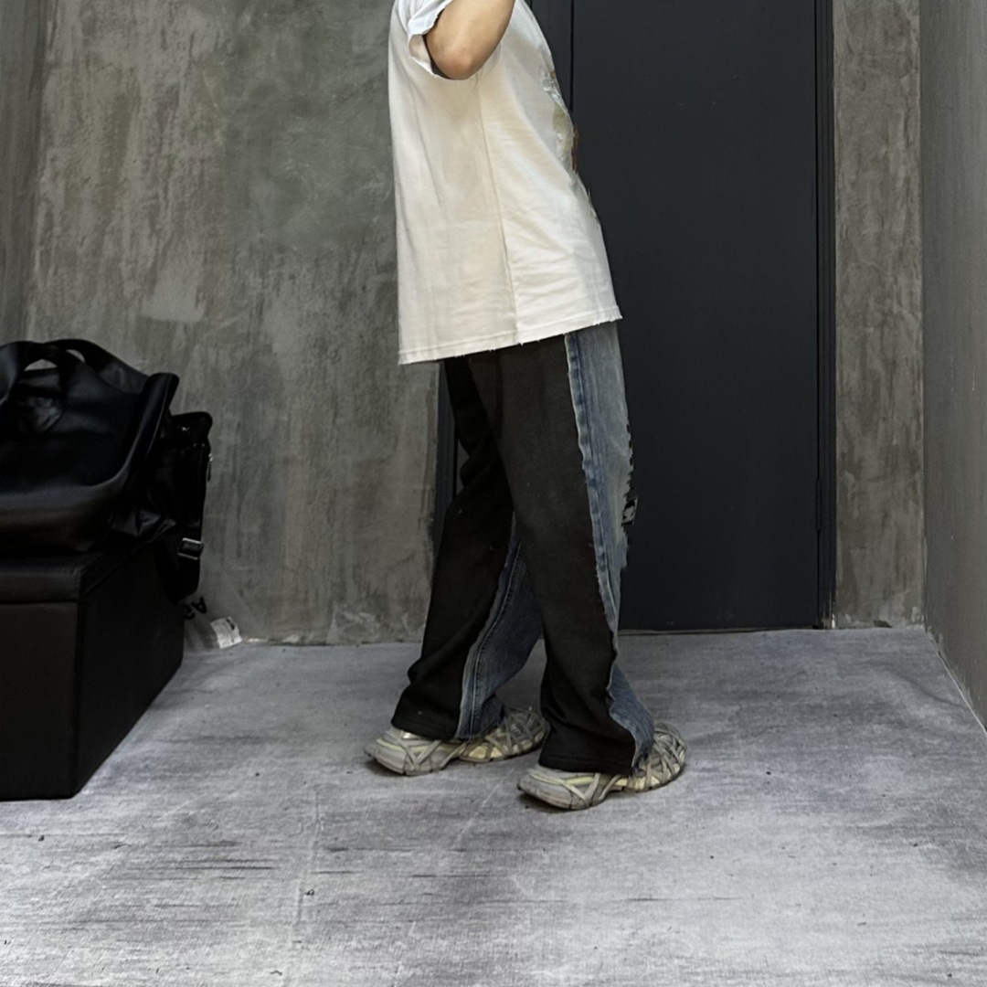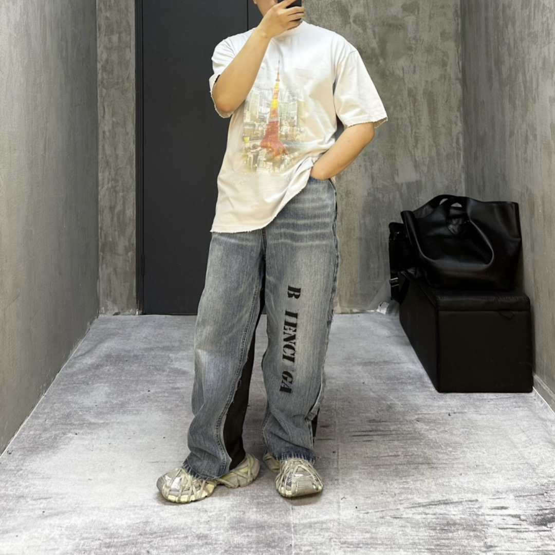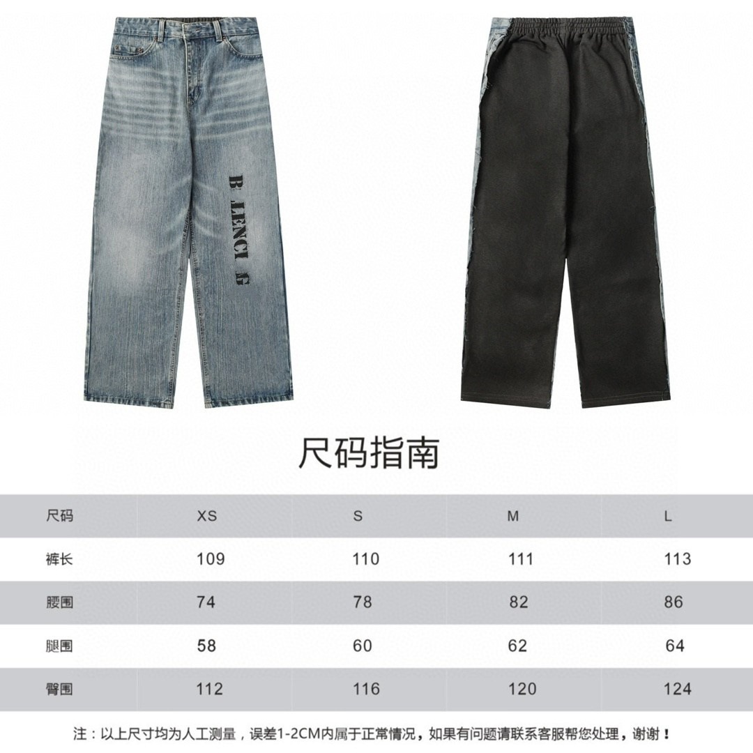 2025早春新款巴黎B家网红款宽松水洗拼接牛仔裤百搭阔腿裤男女