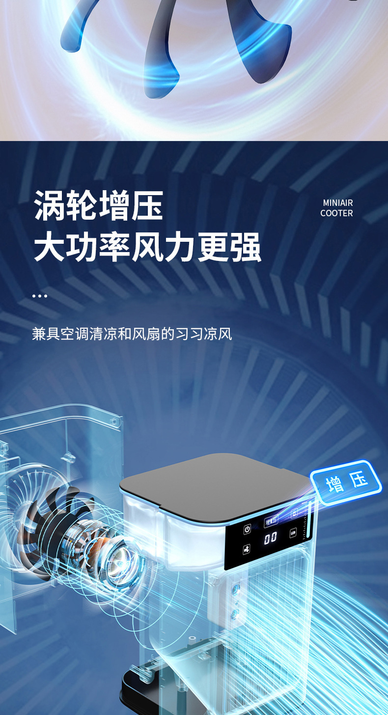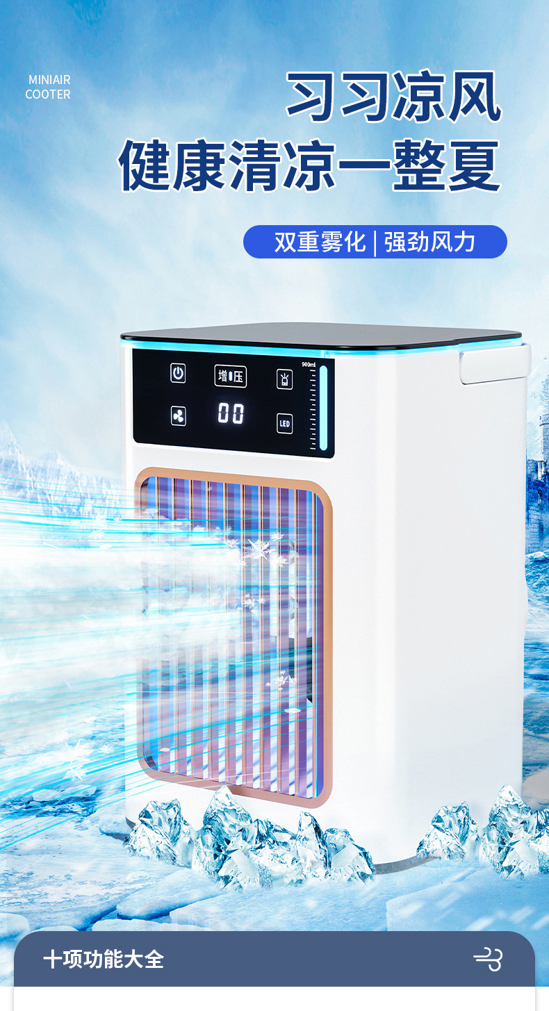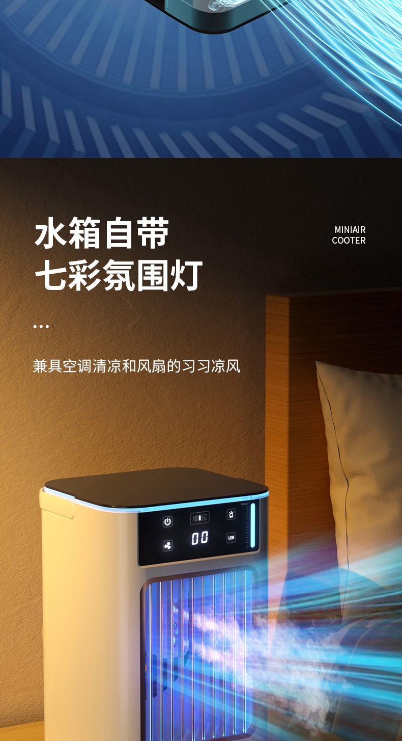 亚马逊冷风机迷你空调扇app遥控led灯加冰喷雾冷风扇桌面冷风机