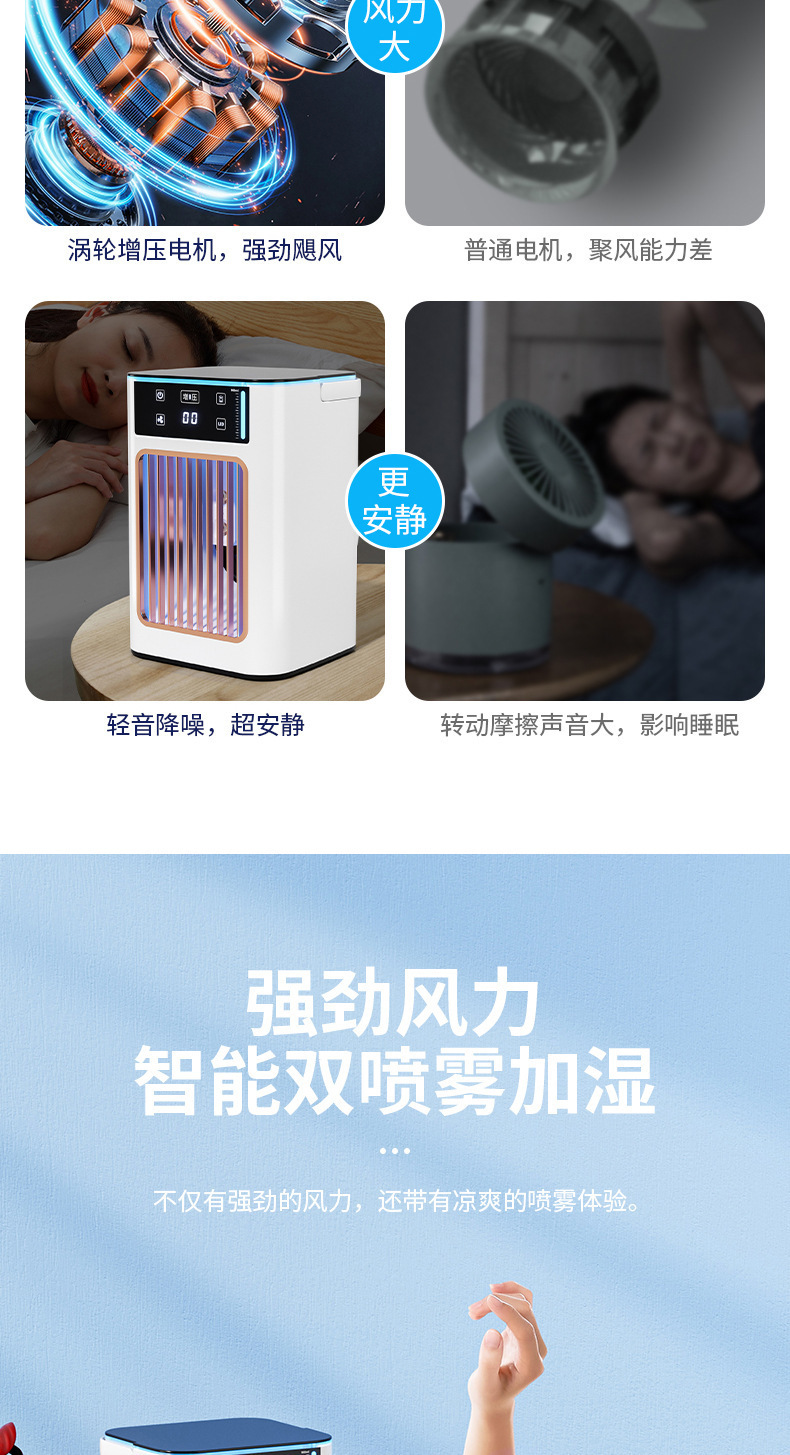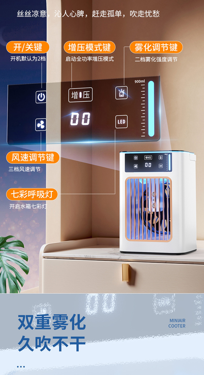 亚马逊迷你冷风机桌面sub小型冷风扇led香薰喷雾小夜灯桌面冷风机