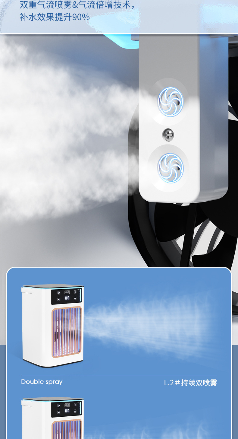新型携帯デスクトップUSB移動冷風機家庭用ミニエアコンファン超大型タンク加湿霧化冷凍