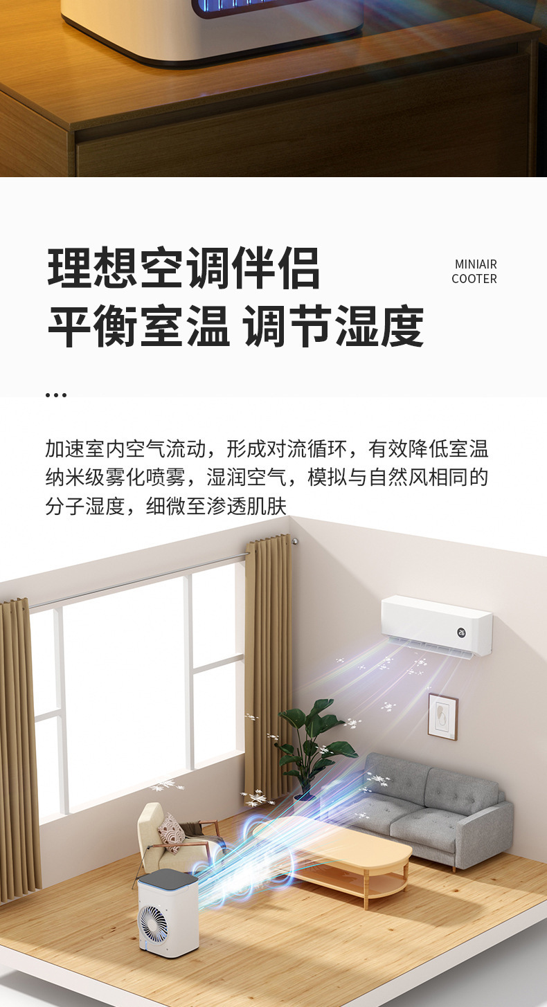 跨境爆款桌面空调扇制冷家用小型迷你冷风机水冷加湿冷气扇电风扇