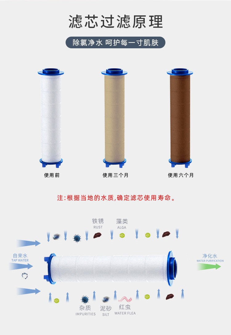 シャワーヘッドの代わりに、フィルターの蓮の頭を塩素除去して、不純物を除去します。
