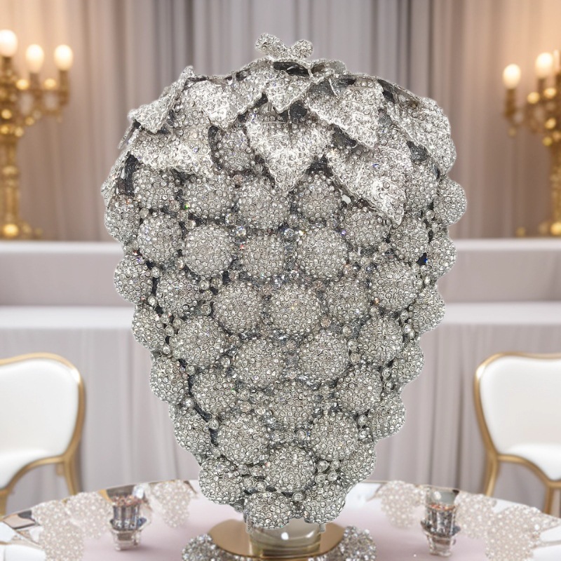 Grape stone bag外贸葡萄镶钻晚宴包镂空金属满钻手拿女包礼服包