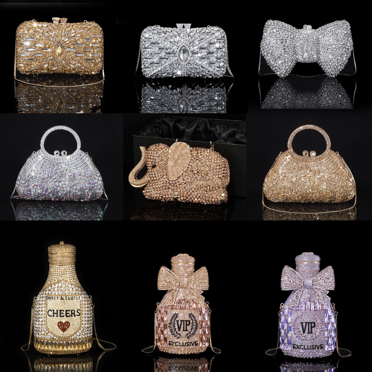 Bottle crystal clutch新款蝴蝶结酒瓶镶钻晚宴包宴会手拿女包bag