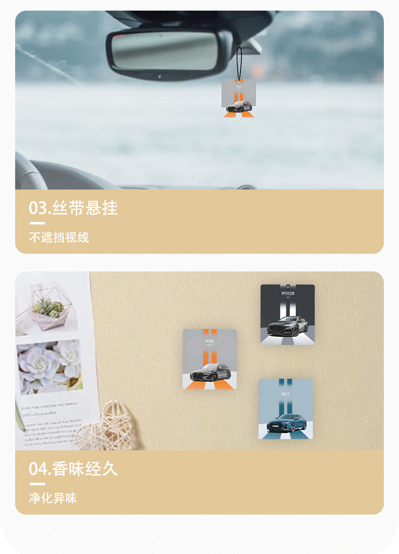 車載用芳香剤タグ、ほのかな香り、消臭芳香剤、車内用香水吊り下げ飾り