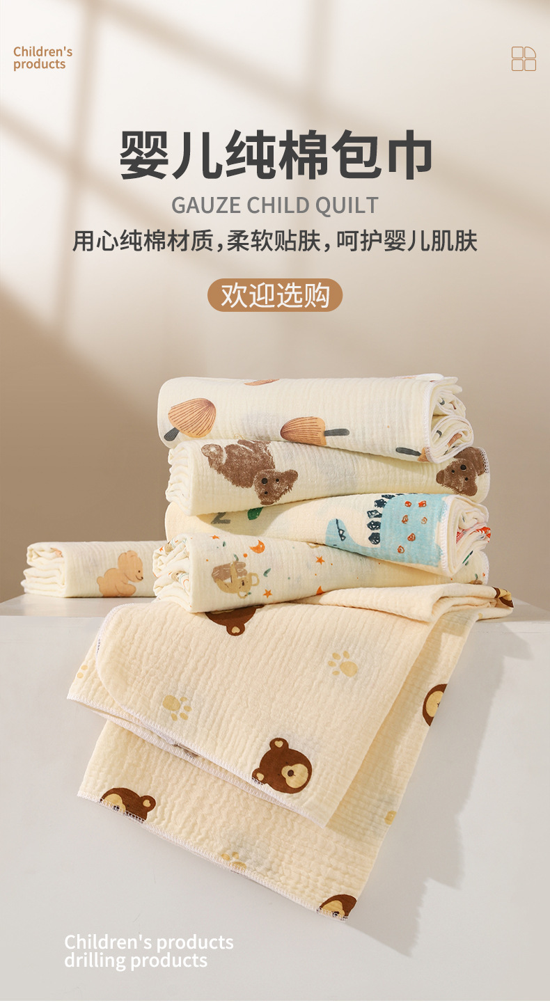 婴儿包单a类双层全棉绉布包被婴幼儿遮阳儿童洗澡巾新生儿用品