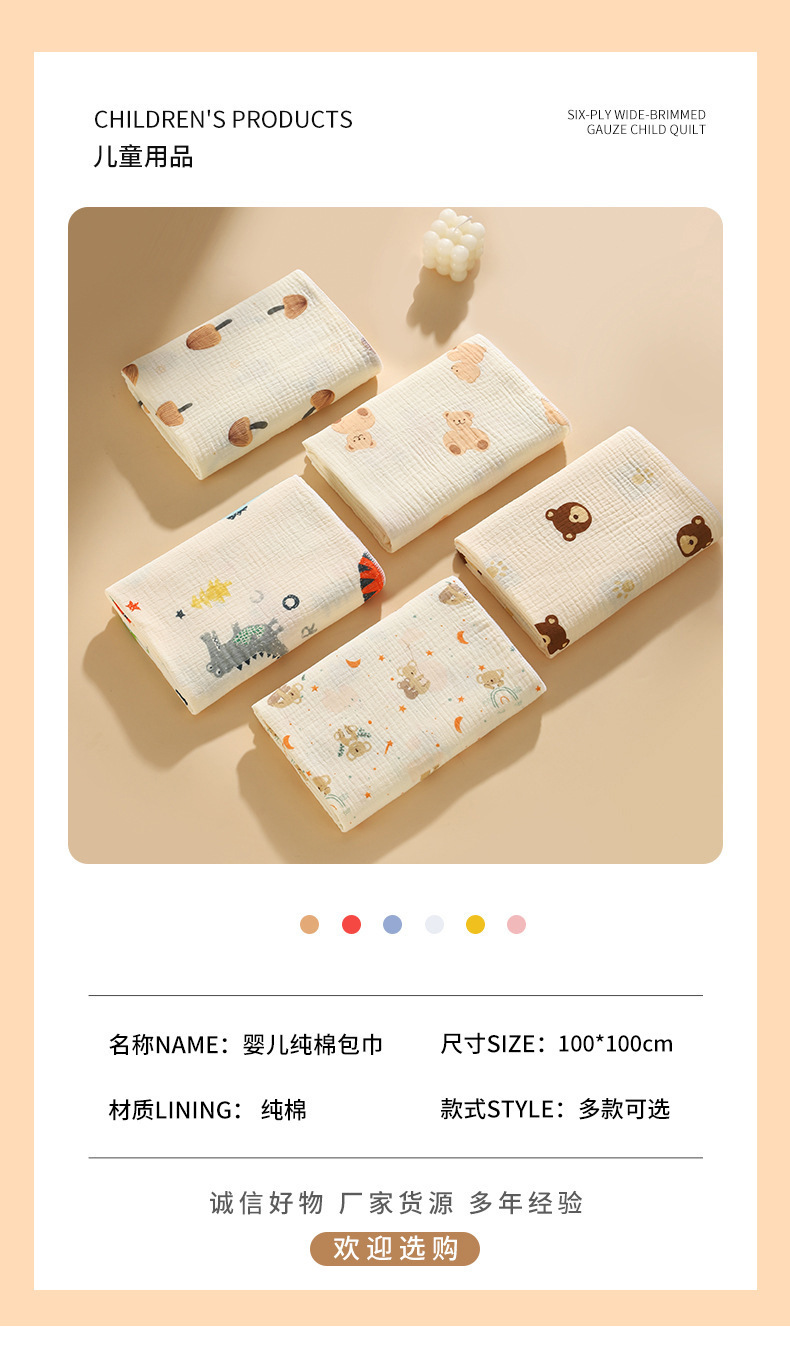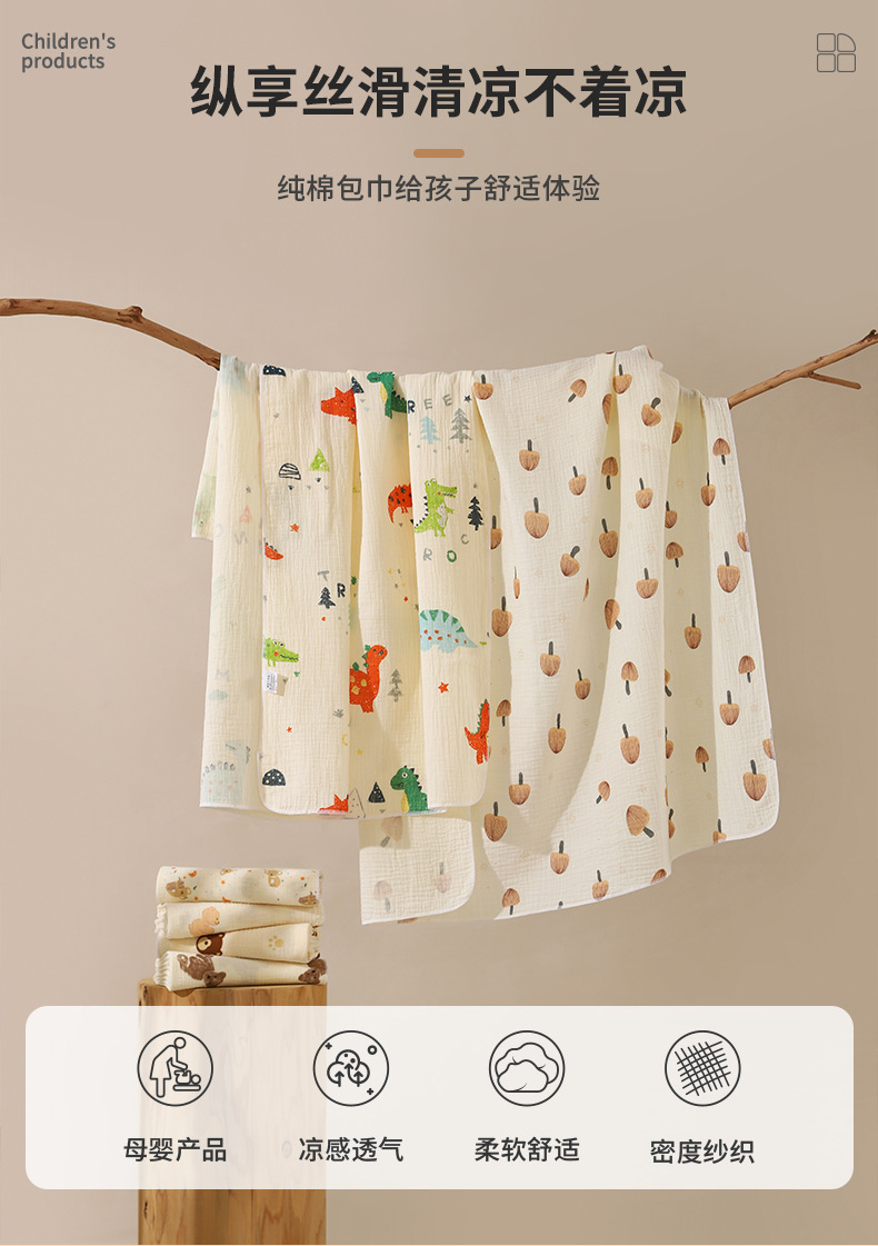 婴儿纱布浴巾六层高密泡泡纱童被宝宝儿童洗澡浴巾午休小包巾代发