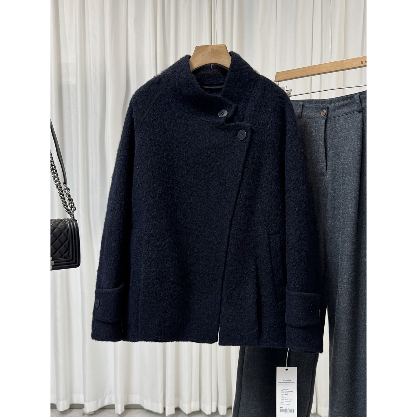 秋冬款65%羊毛双面呢大衣女短款小个子立领洋气时尚外套N4948