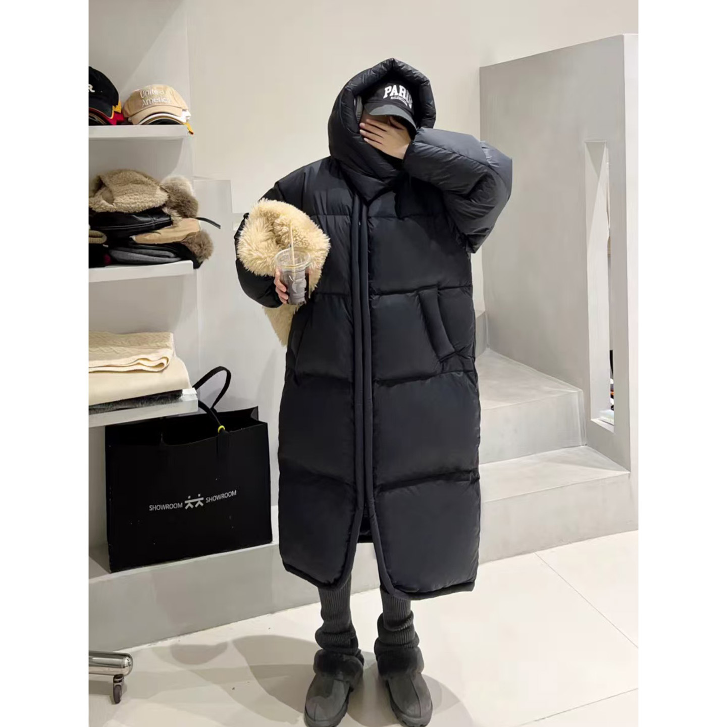冬季新款中长款连帽羽绒服女宽松保暖双拉链外套女N4938