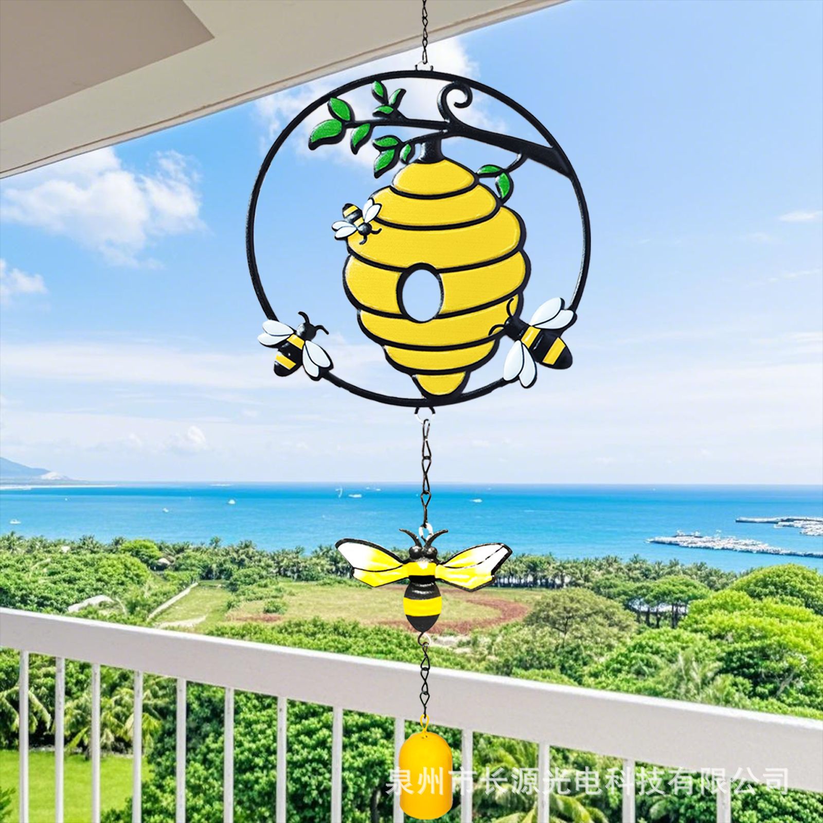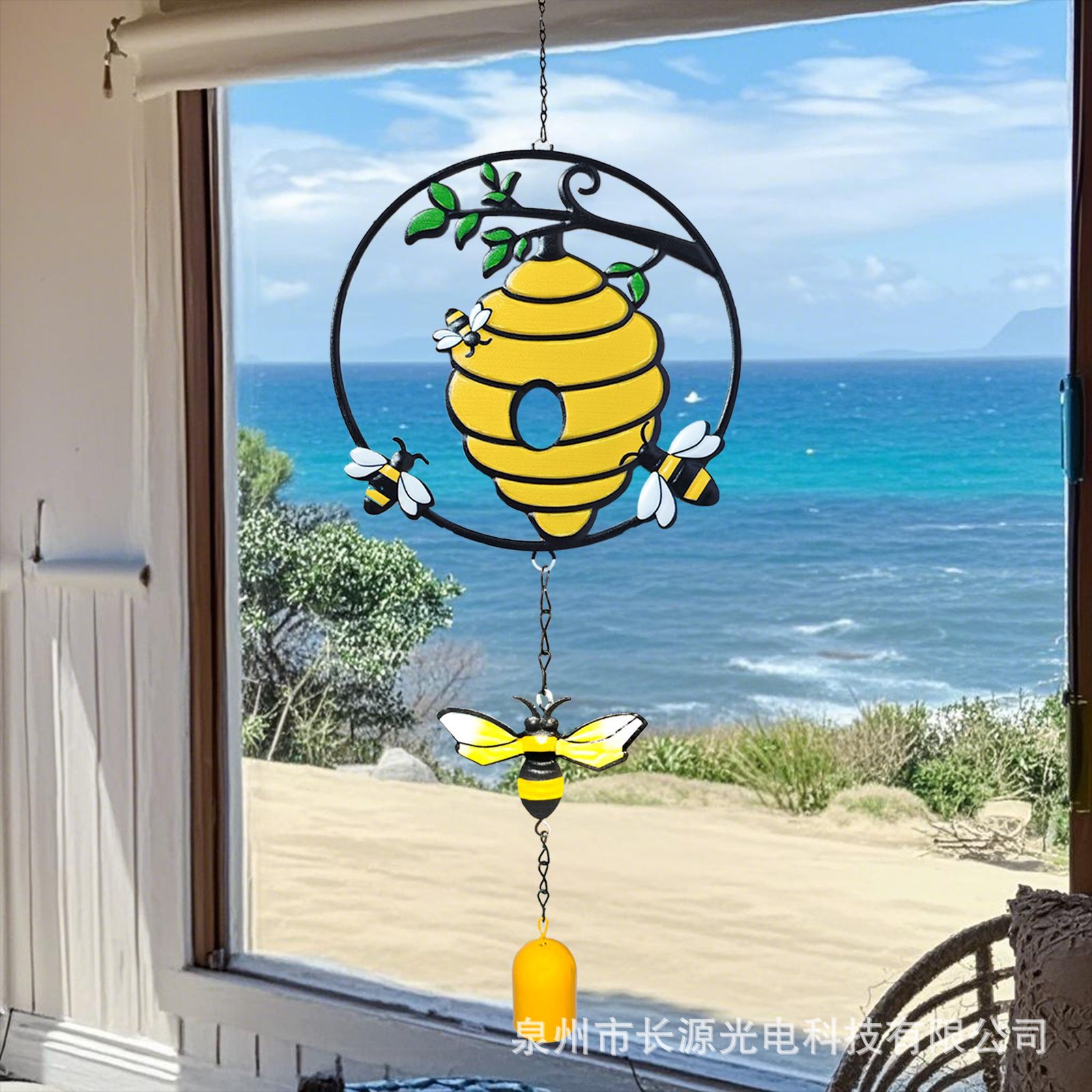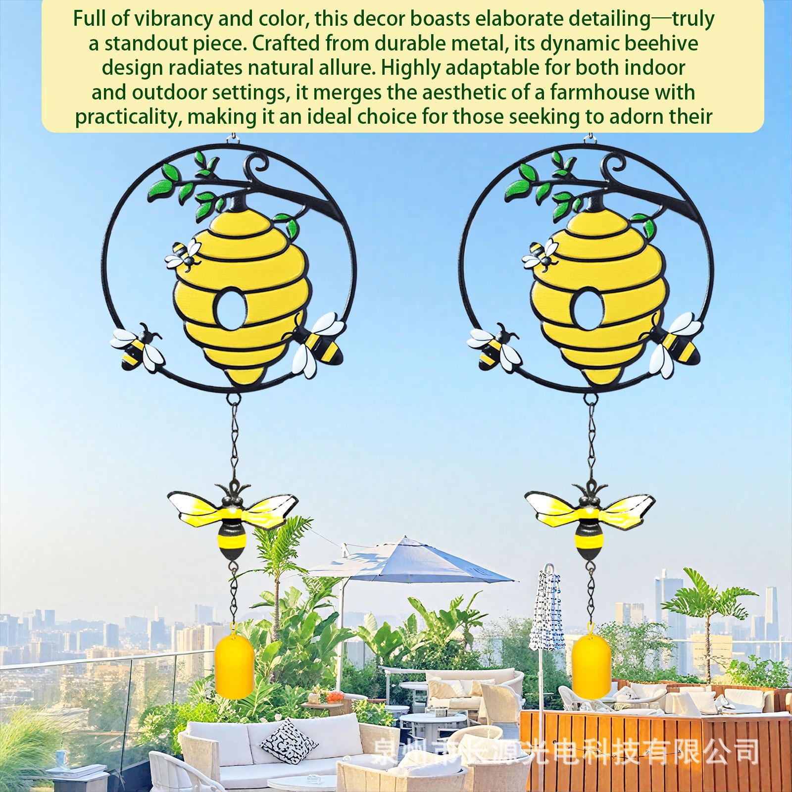 クロスボーダー金属蜂風鈴鉄塗装工芸品屋外中庭回転吊り下げ装飾品ガーデンカラフルなペンダント