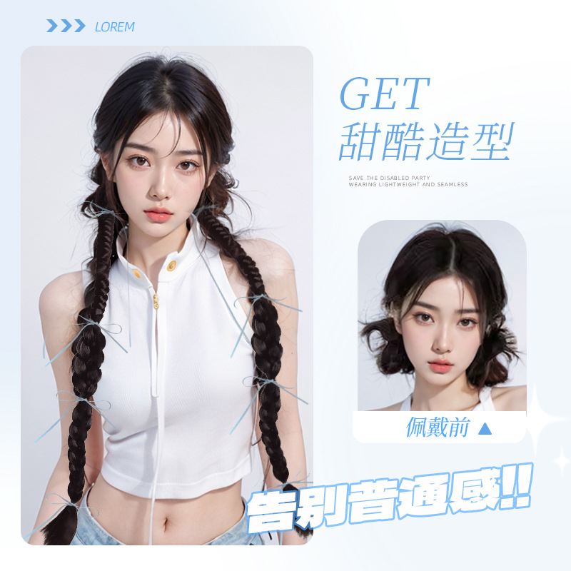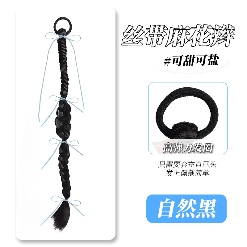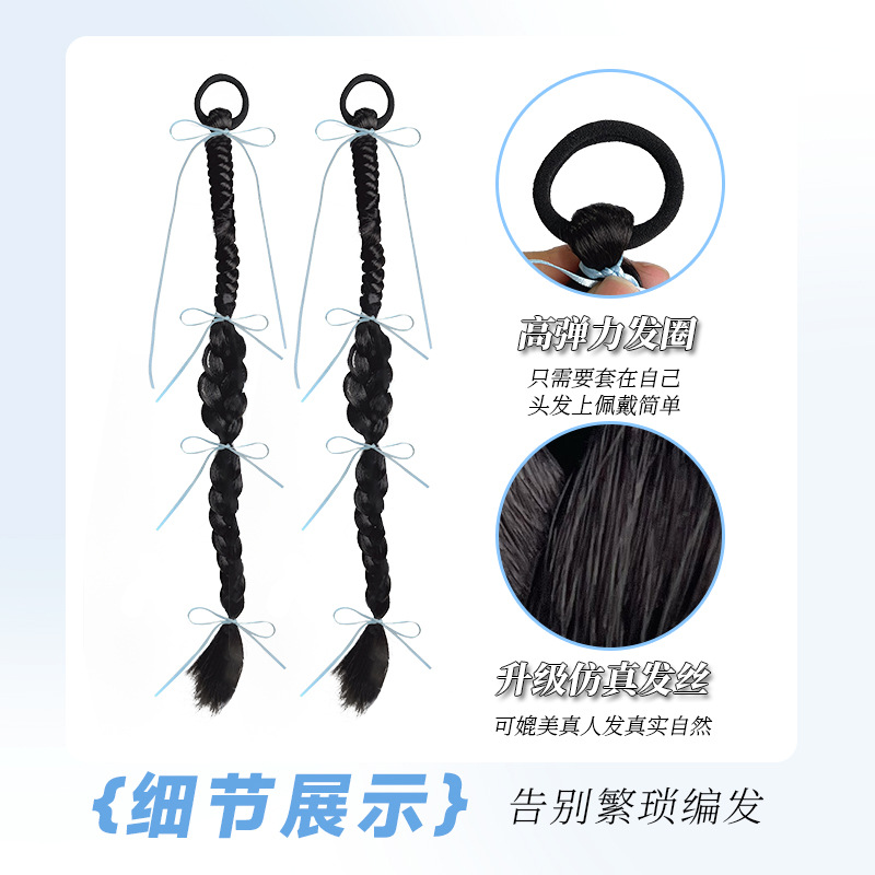 蓝色丝带 假发 扭扭辫 麻花辫 氛围感 甜酷 丝带麻花辫 发圈款 妆造 饰品 头饰