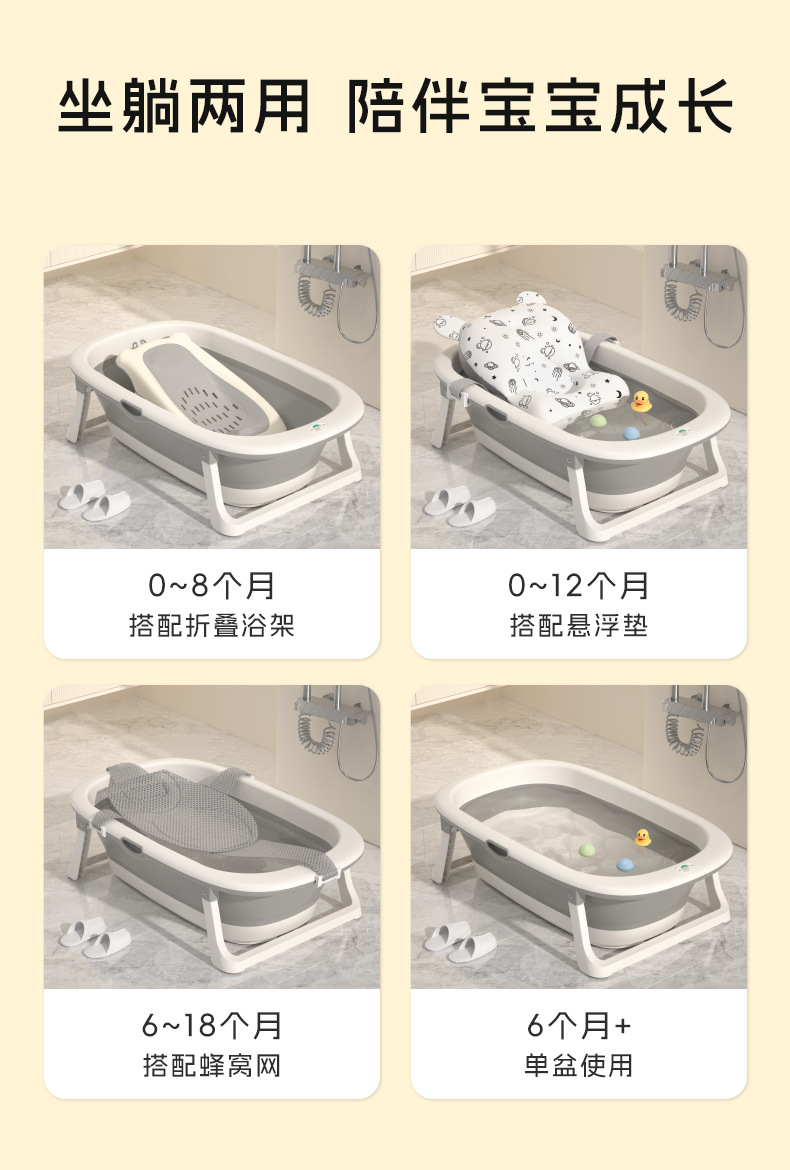 赤ちゃんは折り畳み式の浴槽に座ることができます。赤ちゃんは横になって風呂に入ることができます。