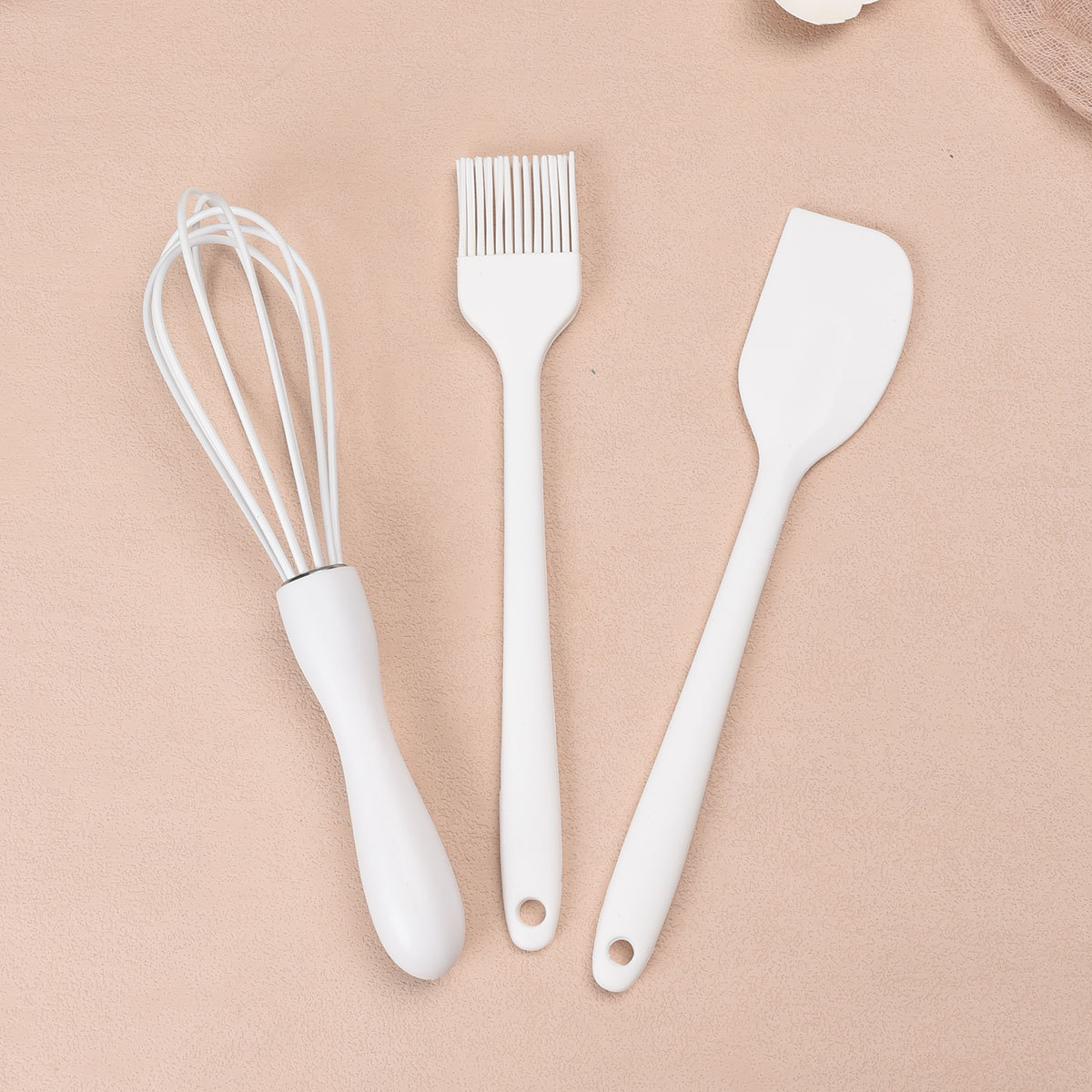 ミニシリコンスパチュラ3点セット 耐熱クリームケーキスパチュラ シリコン泡立て器 オイルブラシ ベーキングセット