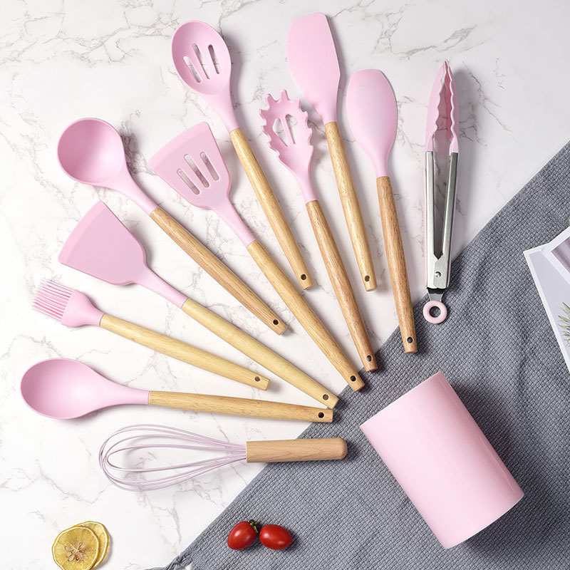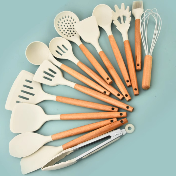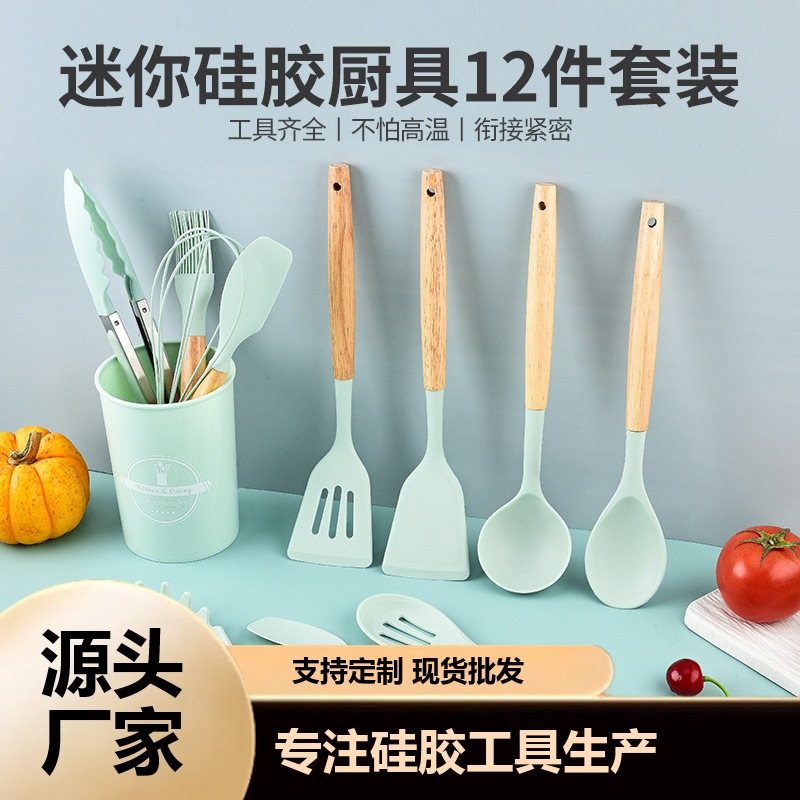 木柄シリコンキッチン用品ミニ12点セットノンスティック専用スパチュラ家庭用調理ザルスープスプーンキッチン用品