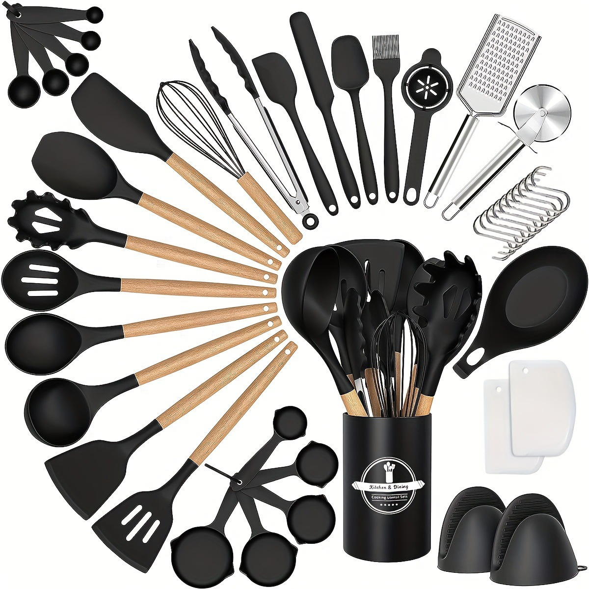 黒色木柄シリカゲル調理器具44点セット耐高温非粘着鍋シリカゲルシャベルスプーン食品級キッチンツールセット