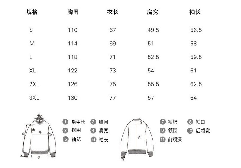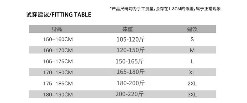 S(身長160-170/50-60kgインナー着用),M(身長170-173/60-70kgインナー着用),L(身長173-175/70-82.5kgインナー着用),XL(身長175-180/82.5-90kgインナー着用),2XL(身長180-185/90-100kgインナー着用),3XL (身長185以上/100-110kg以内着用)