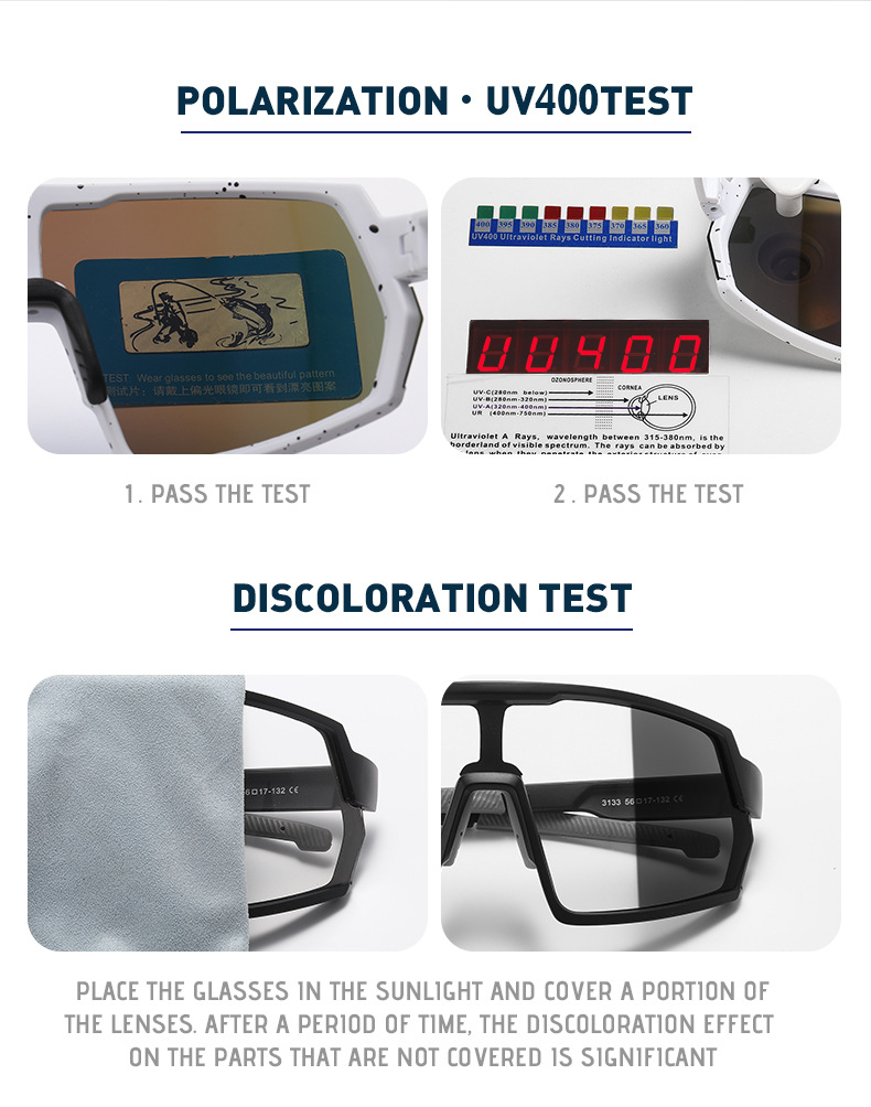 此款偏光太阳镜镜片采用加厚强化镜片,强化镜片的优点是更耐磨,柔韧性更好,抗冲击力更强,视线更清晰,防眩光效果更好!