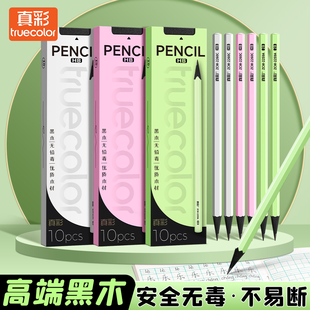 真彩黑木铅笔不易断高颜值小绿杆学生专用美术素描铅笔儿童练字笔