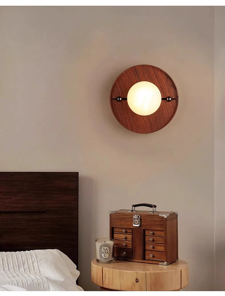 スペイン大理石全銅わびさびスタイル中世リビングルーム背景モダンライト高級クリエイティブラウンドベッドルームベッドサイドウォールランプ