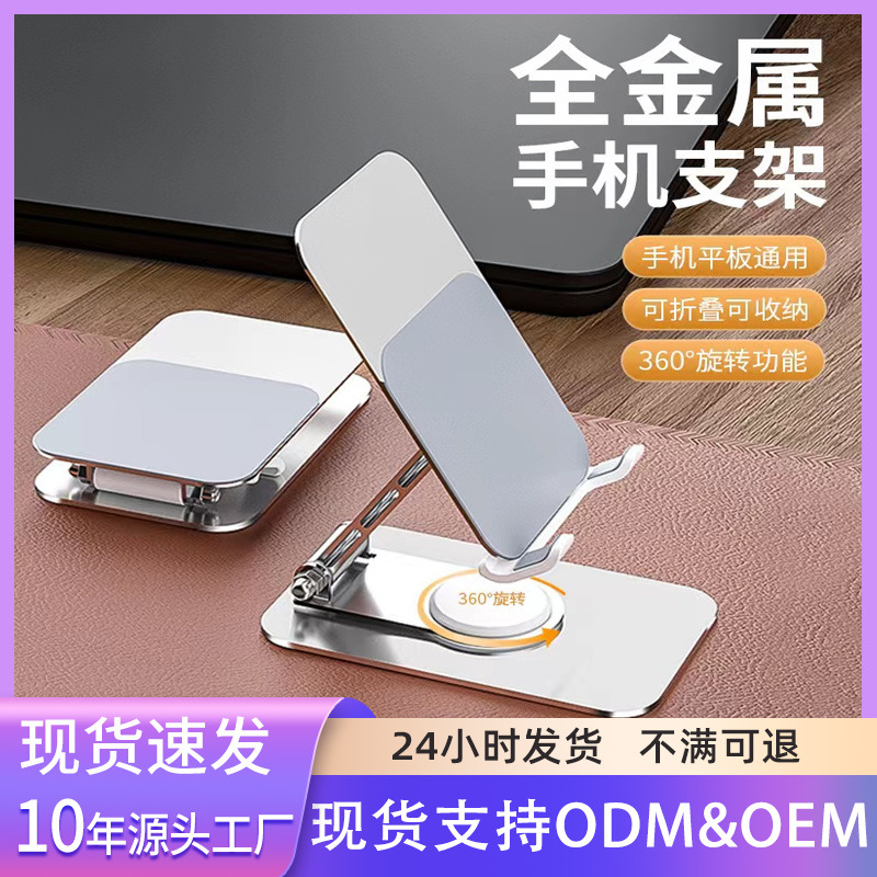 全金属製滑り止め折りたたみ式スマホスタンド 卓上360度回転 高さ調節可能 多機能