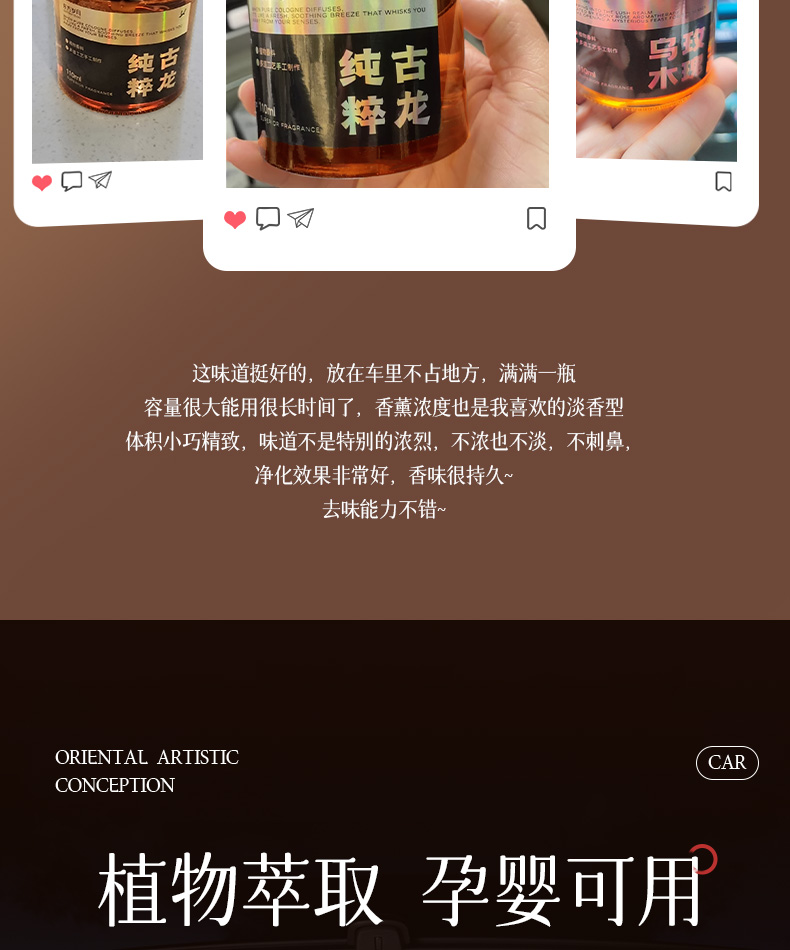 车载香薰观山香氛持久留香汽车专用香水车内用净化空气去异味