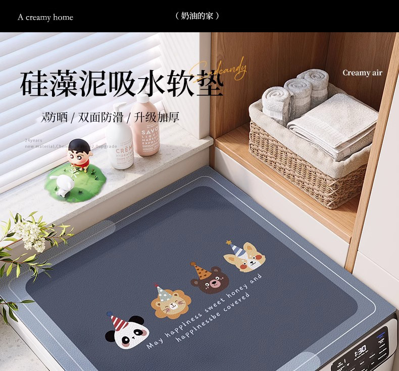 卡通洗衣机防尘罩吸水速干硅藻泥盖布耐磨耐脏易打理可裁剪防滑垫
