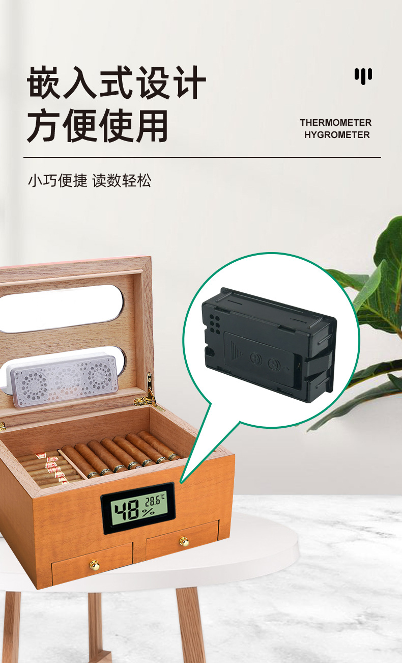 円形の人気温度湿度計埋め込み型プローブ付き爬行館温湿度計シガーワインキャビネット温湿度計