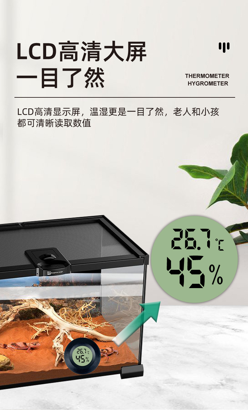 円形デジタル温度計爬虫類電子温湿度計アクリルボックス爬虫類温度計切替可能