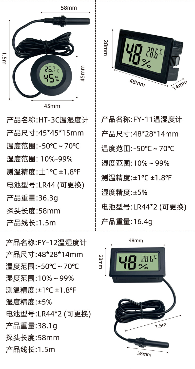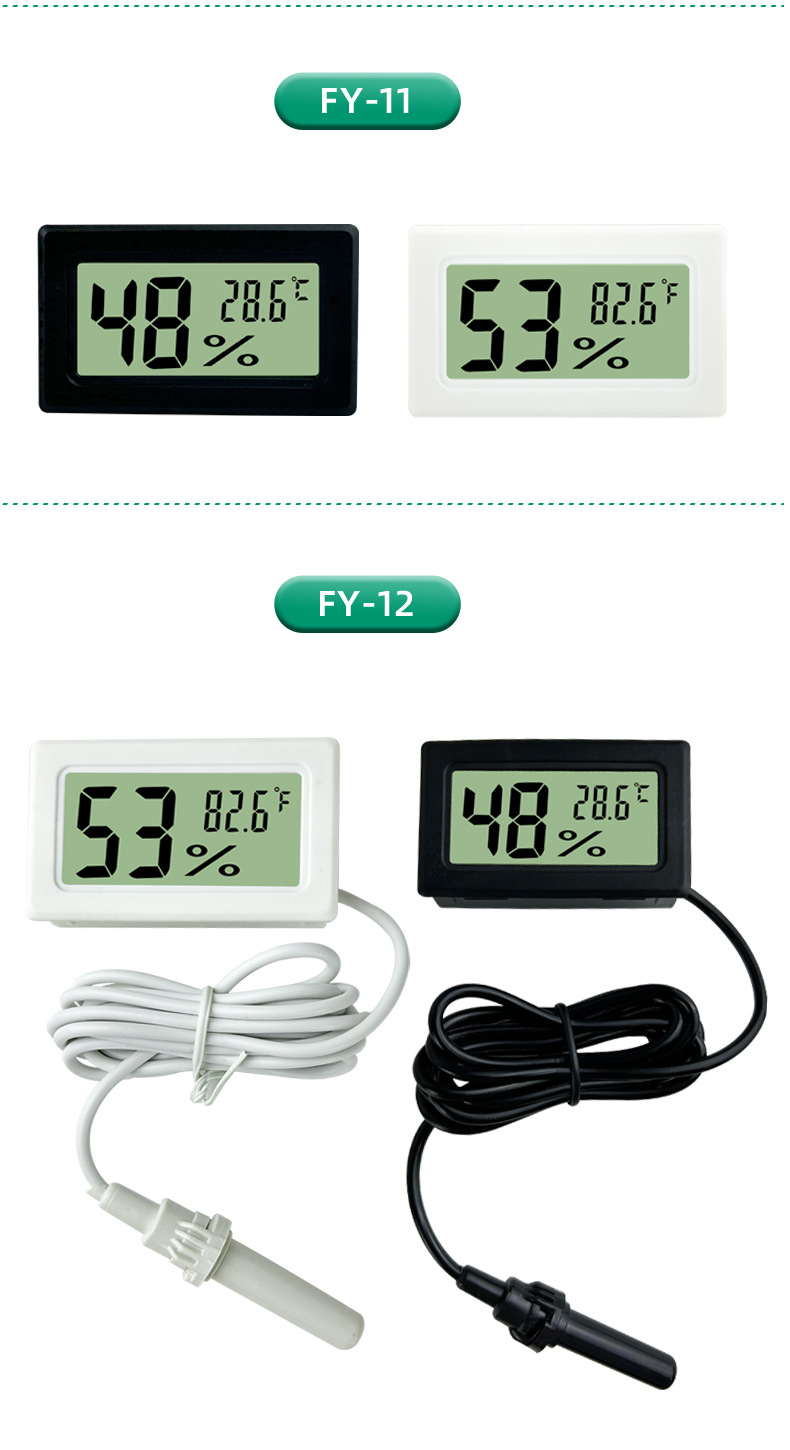 FY-11FY-12埋め込み式温湿度計プローブ付き温湿度表示計爬虫類ペット温湿度計