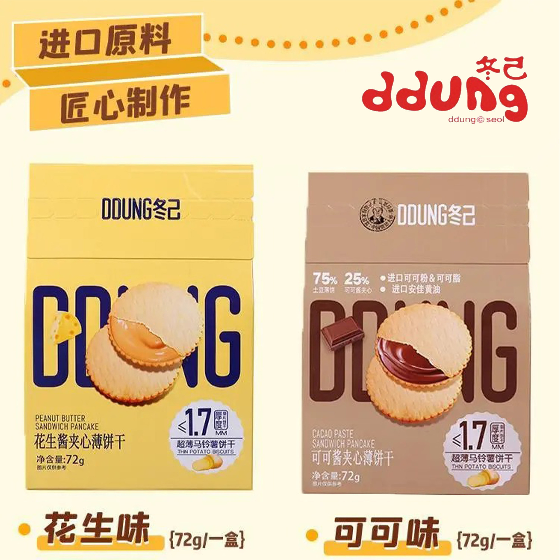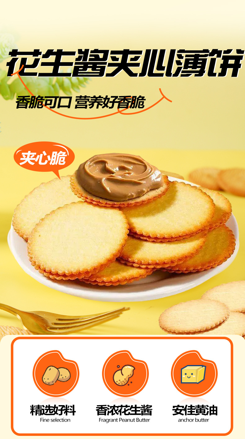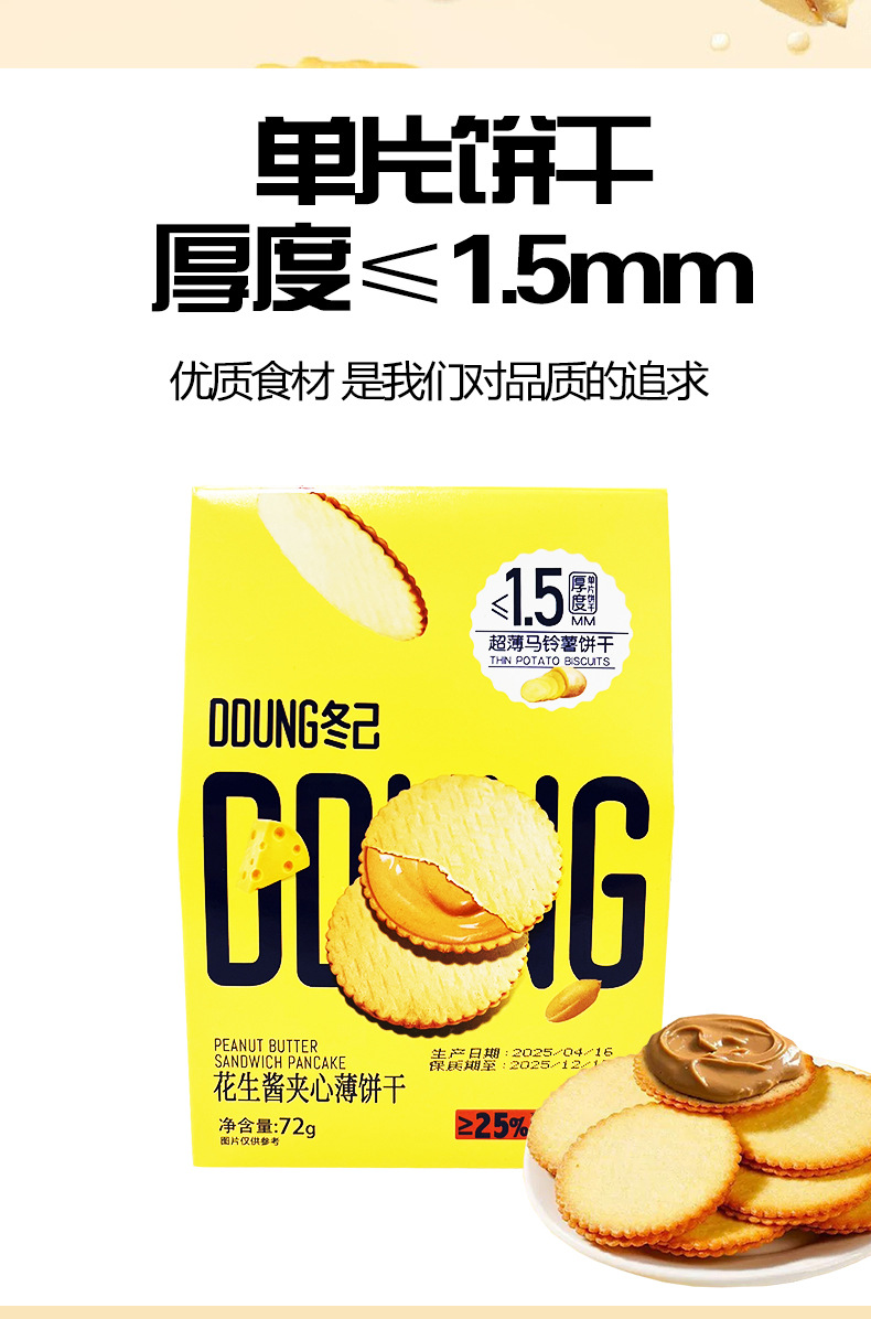 冬己花生酱夹心薄饼干可可酱超薄马铃薯饼干追剧解馋小吃休闲零食