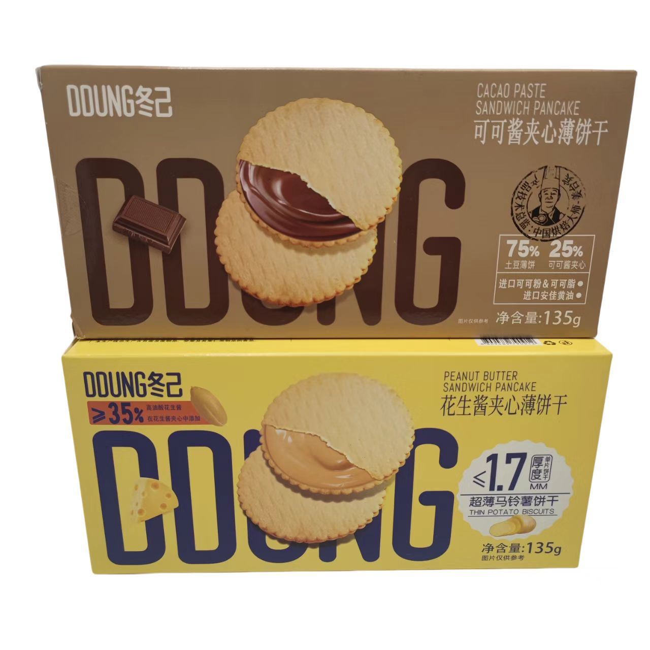 冬己可可花生酱夹心薄饼干135g盒装伴手礼休闲零食品整箱24盒批发
