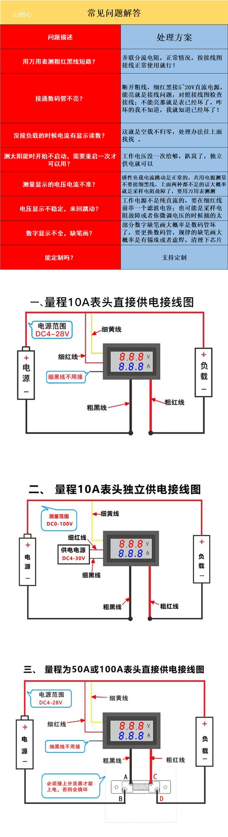 DC0-100V10A/50A/100A DC 電圧電流電力温度測定器 3 桁表示ヘッド