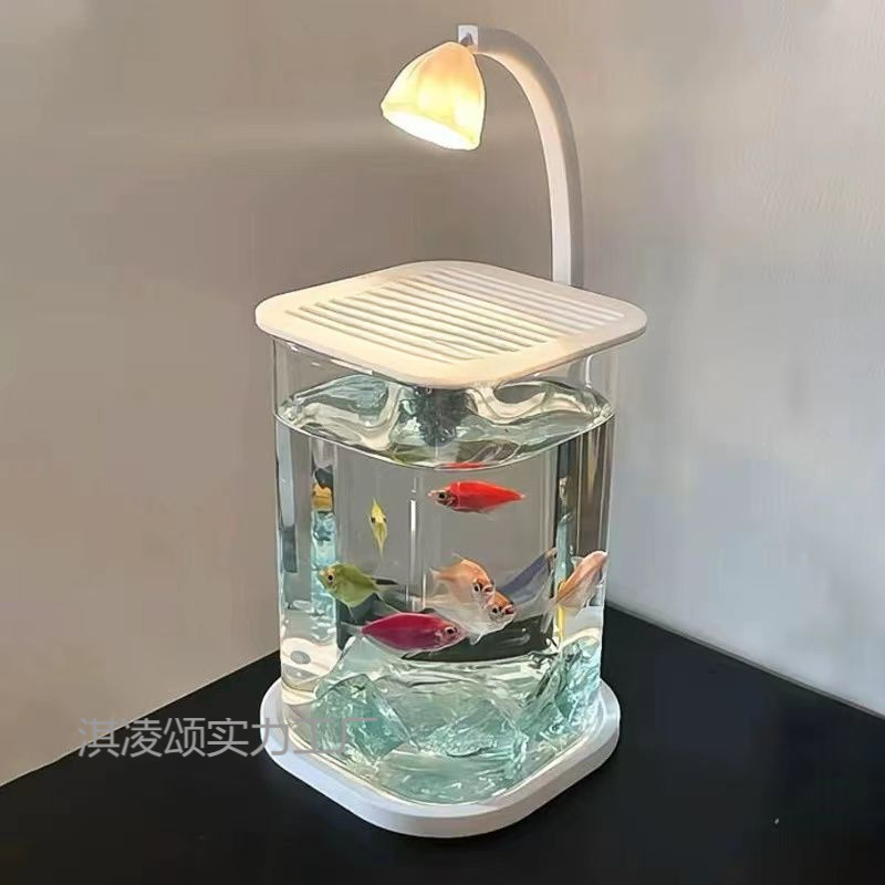 ミニ水槽、ベタ、小さなガラス水槽、リビングルームのクリエイティブなデスクトップ装飾品、怠け者のためのハイエンドの装飾ライト