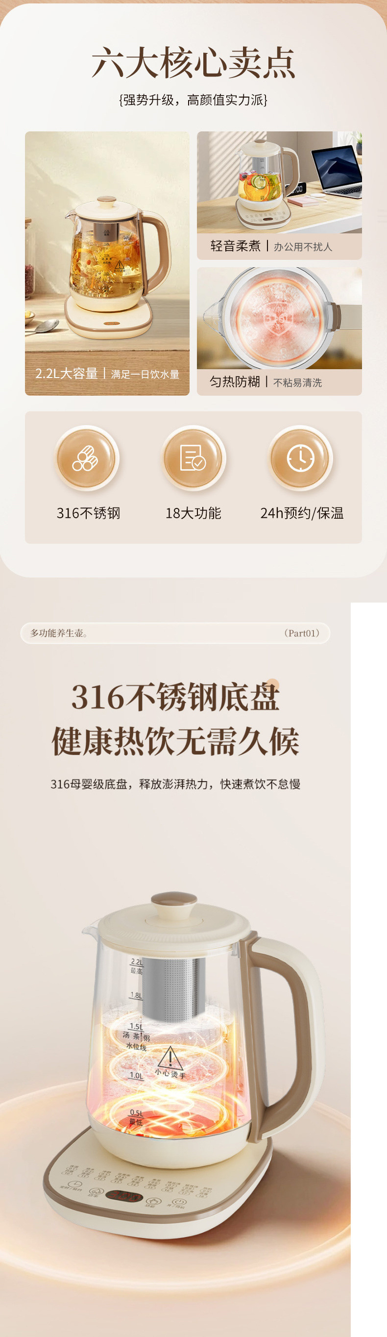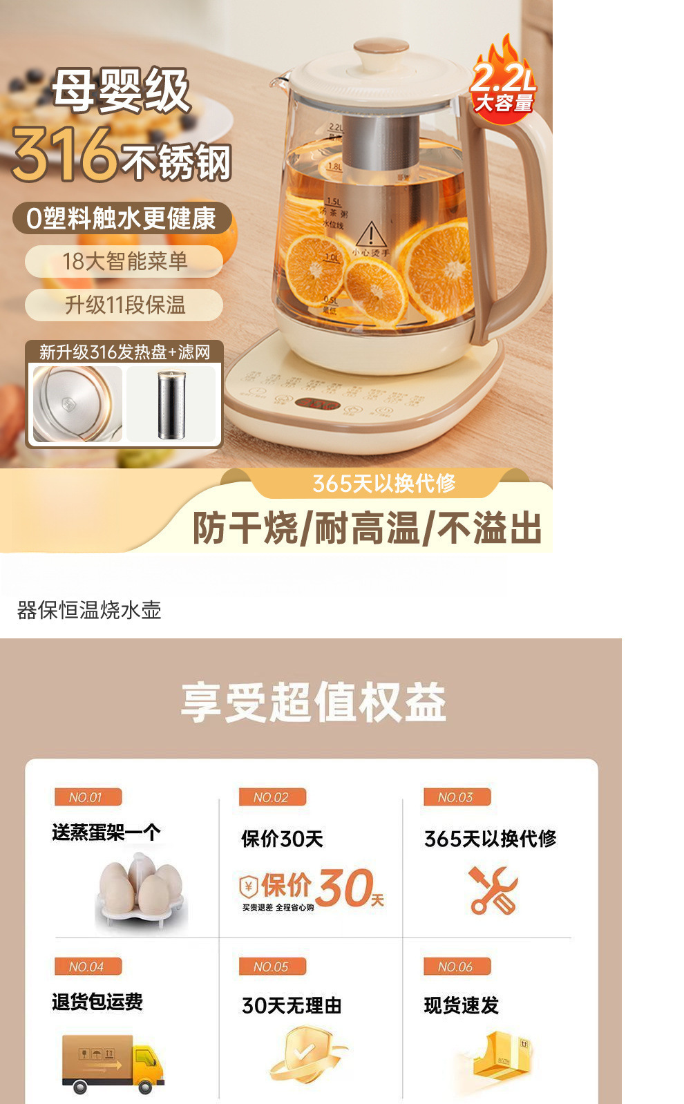 健康ポットオフィスホットウォーター多機能家庭用大容量ティーメーカー自動定温ケトル卸売価格