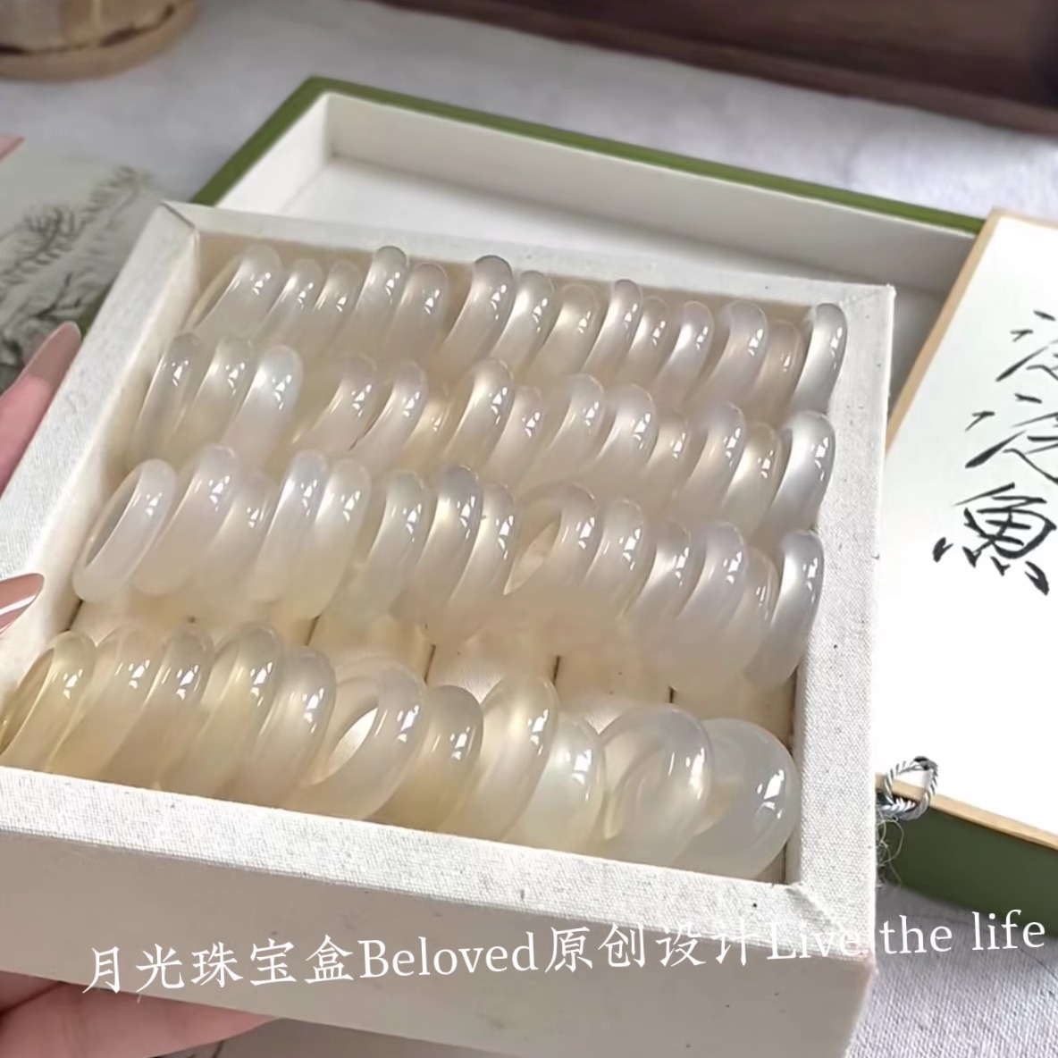 ナチュラルホワイトムーンライトホワイトカルセドニー男性と女性のカップルリングリングハイアイスアゲート翡翠テールリングアクセサリー