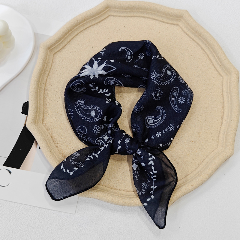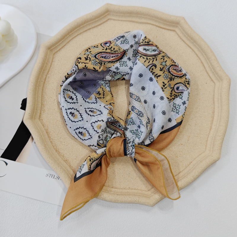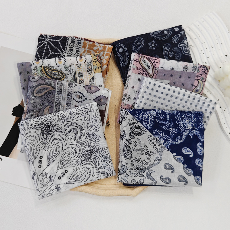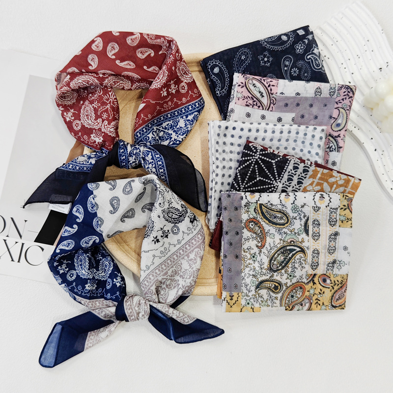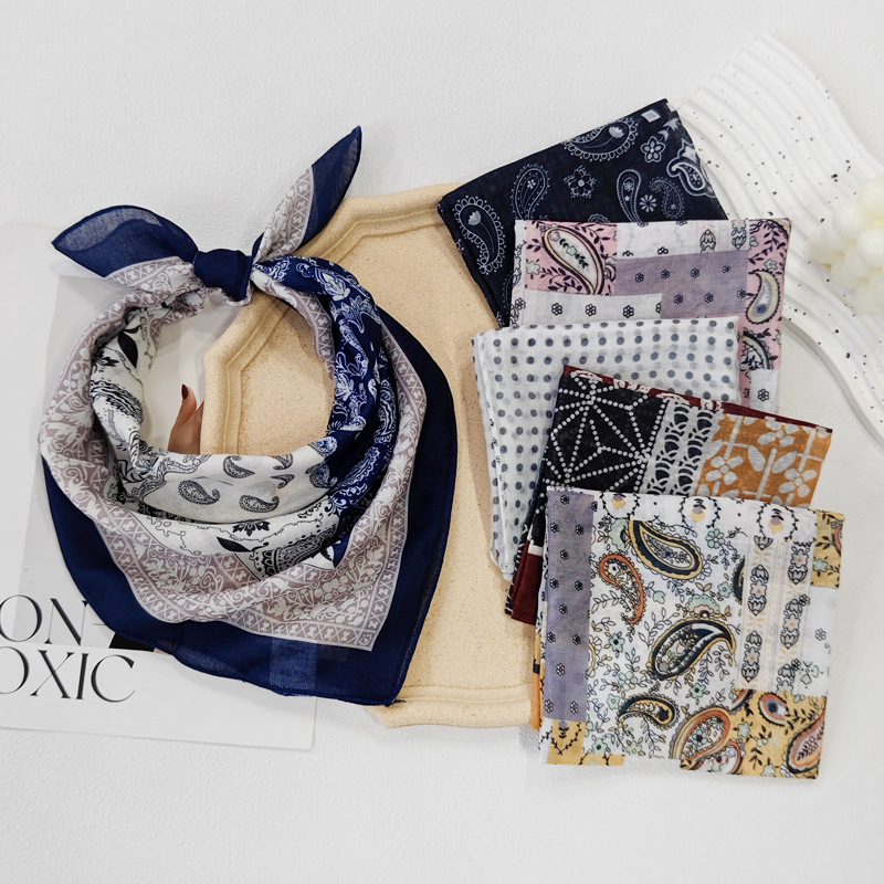 58日系シルクタオル腰果綿麻小方巾夏のスカーフ波点ヘアバンド韓系スカーフ