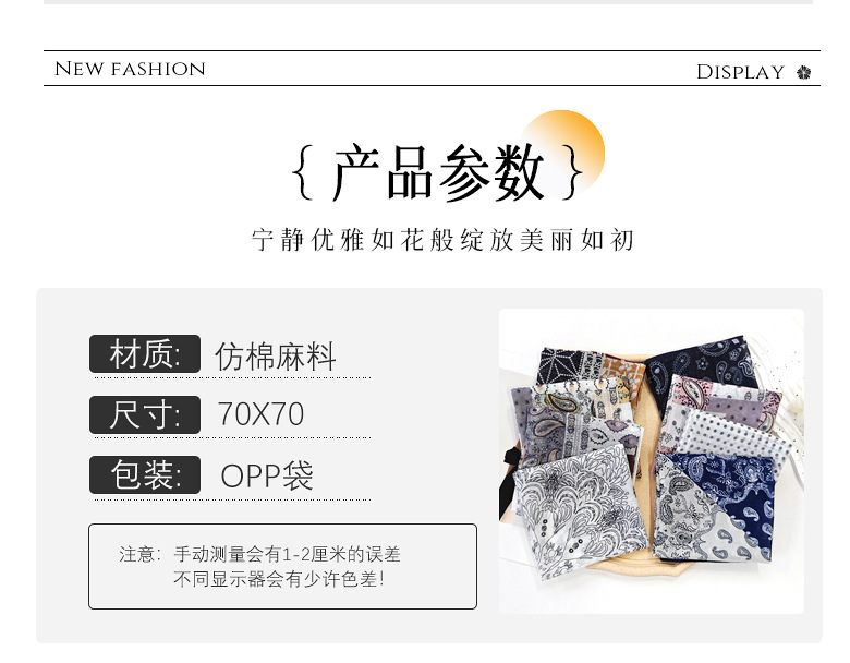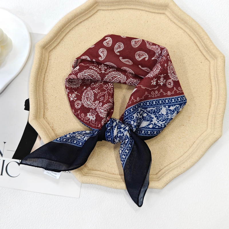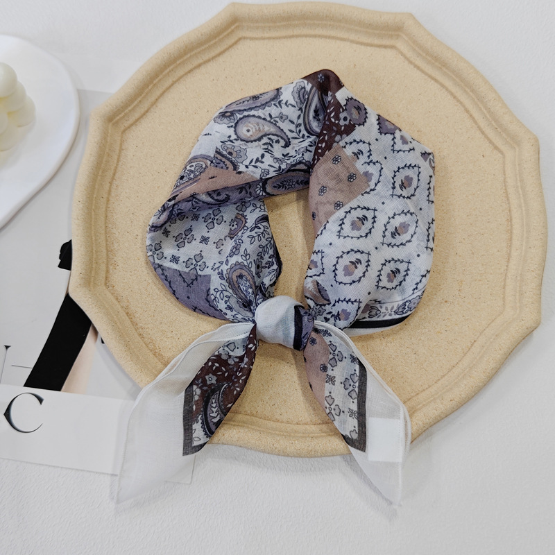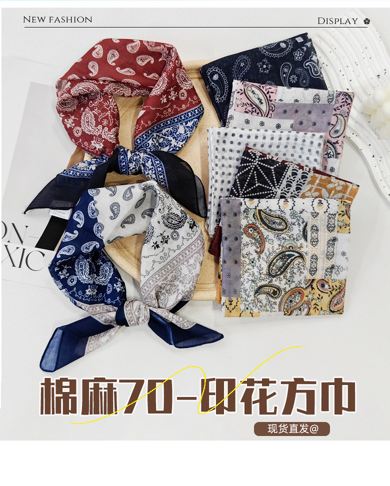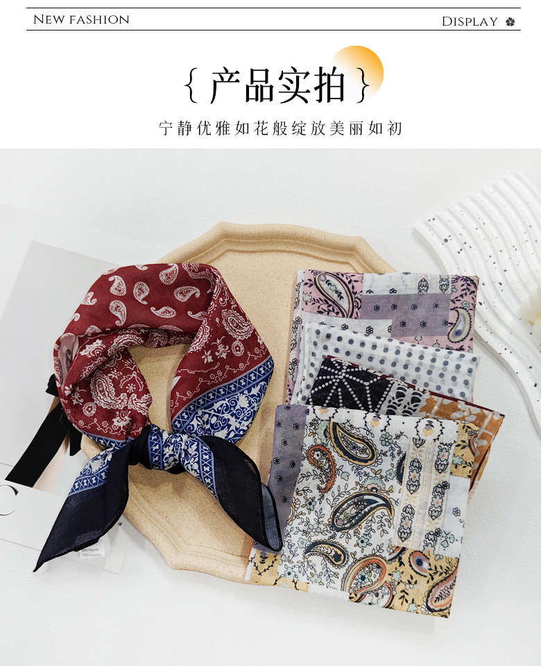 58日系シルクタオル腰果綿麻小方巾夏のスカーフ波点ヘアバンド韓系スカーフ