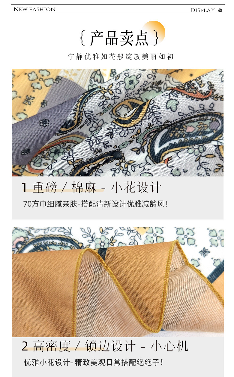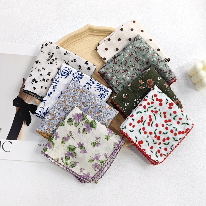 文芸復古小砕花柔らかい純綿53小方巾薄い首保護マフラー女性百合装飾韓系スカーフ