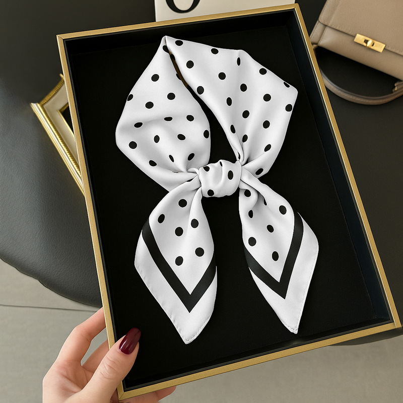 新しい水玉模様の70の小さな正方形のスカーフ、高級な小さなシルクスカーフ、リボン、韓国の多用途の水玉模様のスカーフ、ファッショナブルなヘッドバンド